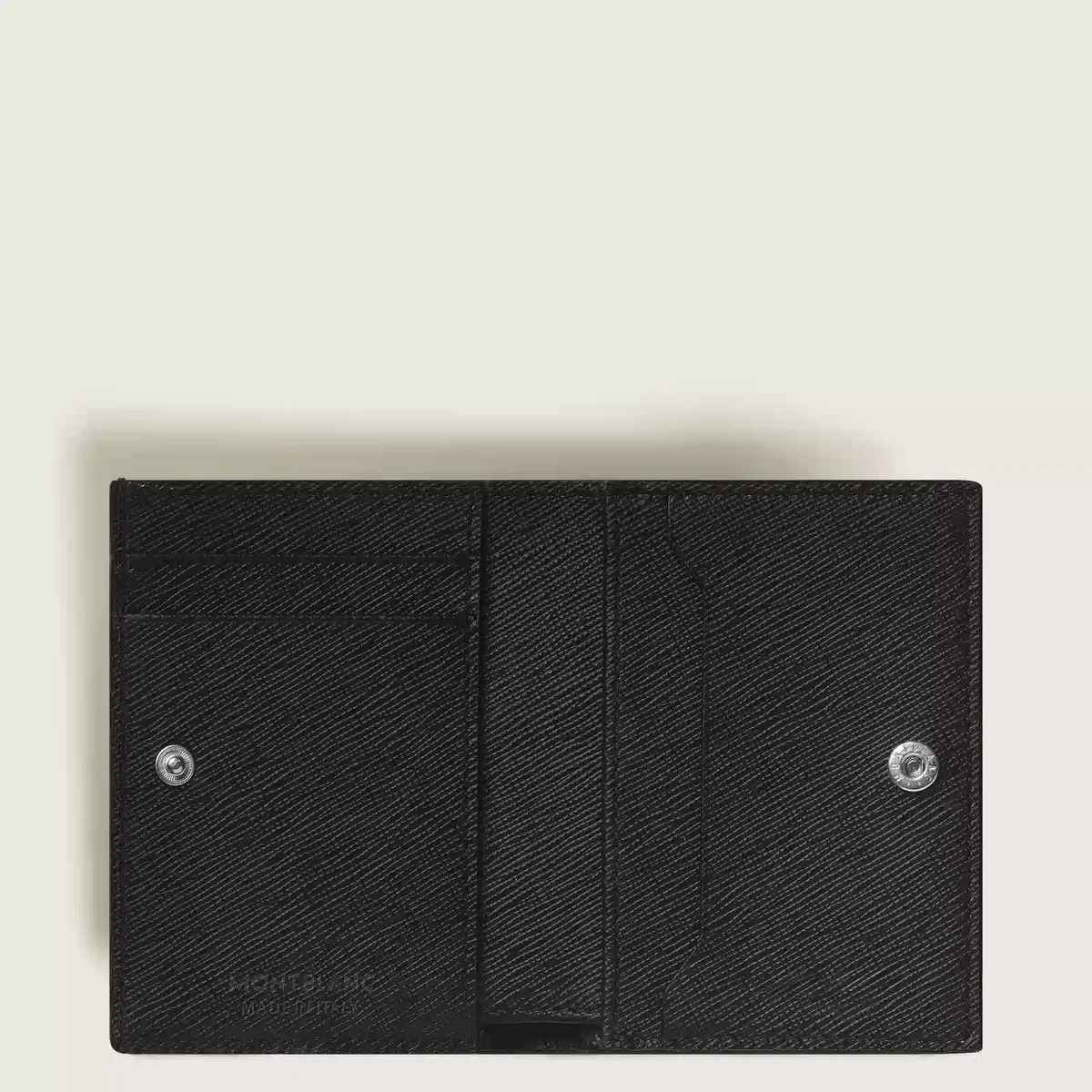 Die Sartorial Nano Continental Geldbörse aus schwarzem Saffiano-Vollnarbenleder mit Prägung ist ein elegantes Must-have. Diese horizontale Geldbörse verfügt über ein Münzfach, eine sichere Klappe mit Druckknopf und das Montblanc Emblem mit Palladium-Finish. Sie bietet Platz für eine Kreditkarte, drei weitere Kartenfächer, ein Geldscheinfach, ein Reißverschlussfach und zwei zusätzliche Fächer für eine übersichtliche Organisation.