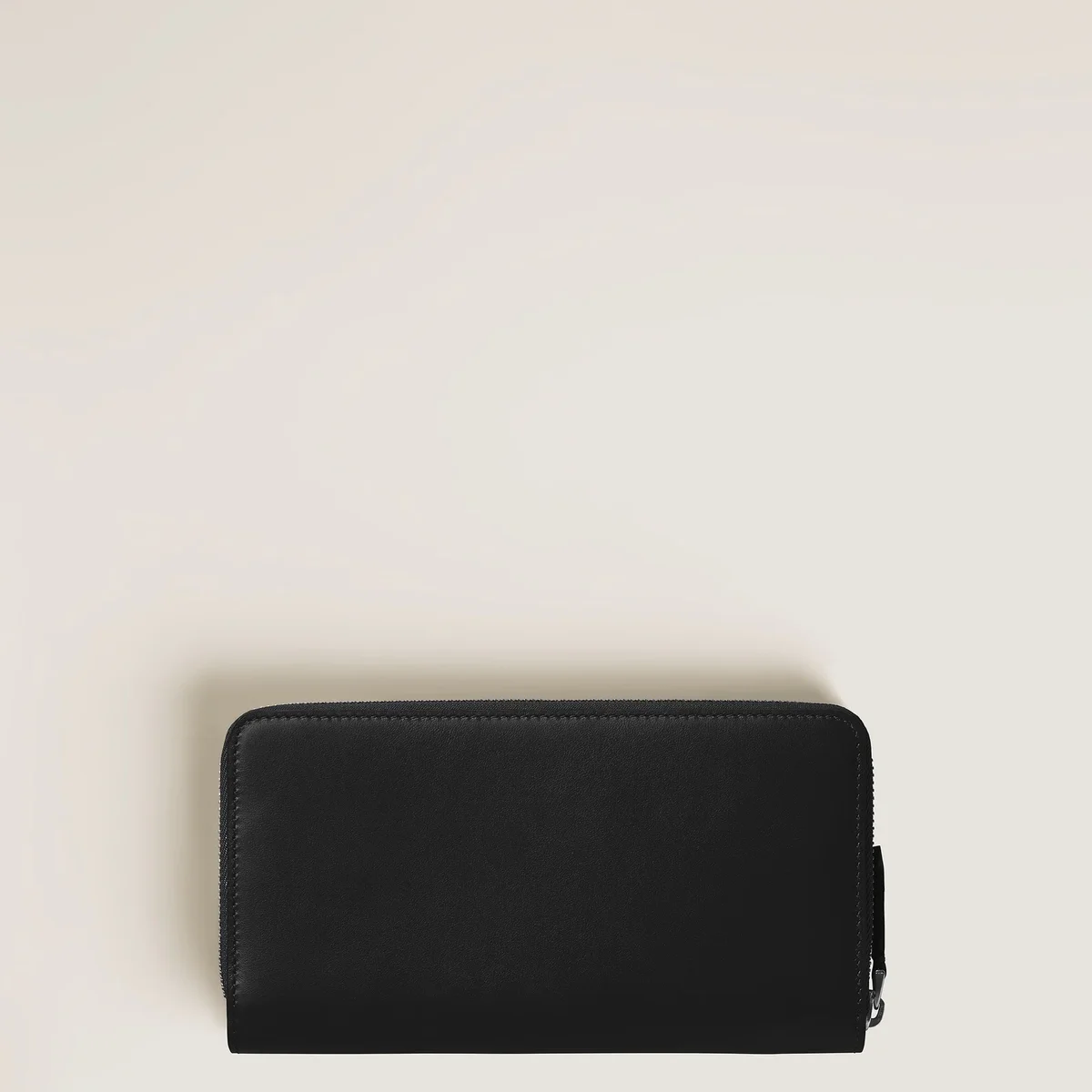 Diese Brieftasche vereint elegantes Design mit praktischer Funktionalität und ist ein vielseitiger Begleiter für jede Gelegenheit. Sie ist aus schwarzem, hochwertigem, weichem Kalbsleder gefertigt und strahlt mit ihrer klaren, rechteckigen Silhouette Eleganz aus. Ein von einer Feder inspirierter Reißverschlusszug öffnet drei Fächer für Banknoten, ein Münzfach mit Reißverschluss, drei Fächer für kleinere Utensilien und Steckplätze für bis zu 12 Kreditkarten und sorgt so für mühelose Organisation mit raffiniertem Stil. Ident-Nr. MB220330 Abmessungen 175 mm * 20 mm * 85 mm