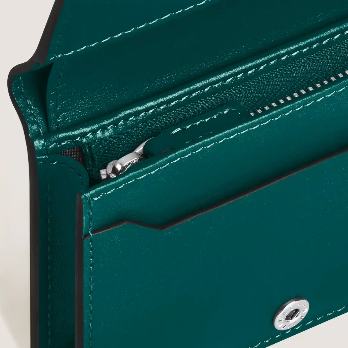 Mit ihrer schlanken Silhouette und dem edlen weichen Leder in Malachit bietet diese kleine Continental-Brieftasche eine elegante Lösung, um Ihre wichtigsten Utensilien sicher und übersichtlich aufzubewahren. Das kompakte Design verfügt über ein Hauptfach mit Reißverschluss, ein Fach für Banknoten, drei Kreditkartenfächer und zwei zusätzliche Fächer.