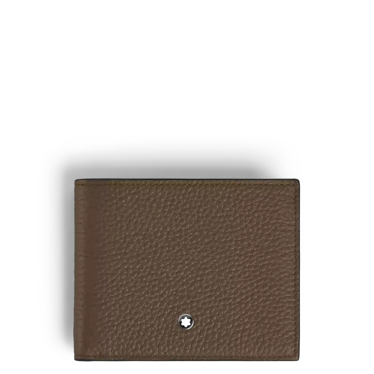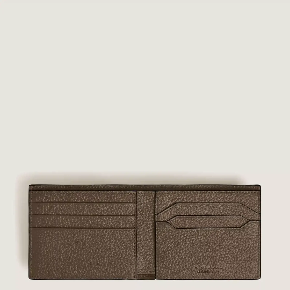 Diese schlanke und raffinierte klassische Brieftasche aus hochwertigem Noisette-Narbleder ist eine elegante Wahl für den täglichen Gebrauch. Sie ist durchdacht gestaltet und verfügt über sechs Kreditkartenfächer, zwei Fächer für Banknoten, zwei zusätzliche Fächer für Quittungen und ist mit dem ikonischen Montblanc-Emblem auf der Vorderseite versehen.