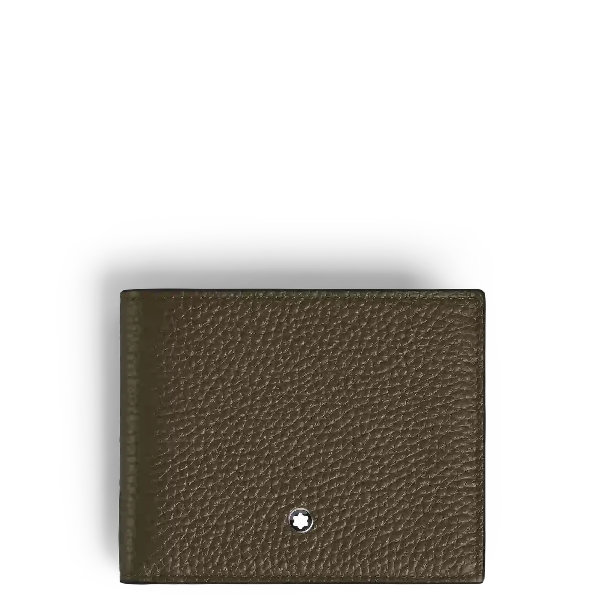 Diese schlanke und raffinierte klassische Brieftasche aus hochwertigem khakifarbenem Narbenleder ist eine elegante Wahl für den täglichen Gebrauch. Sie ist durchdacht gestaltet und verfügt über sechs Kreditkartenfächer, zwei Fächer für Banknoten und zwei zusätzliche Fächer für Quittungen. Mit schwarzem Stoff gefüttert und mit dem ikonischen Montblanc-Emblem verziert, verbindet sie Funktionalität mit zeitlosem Stil.