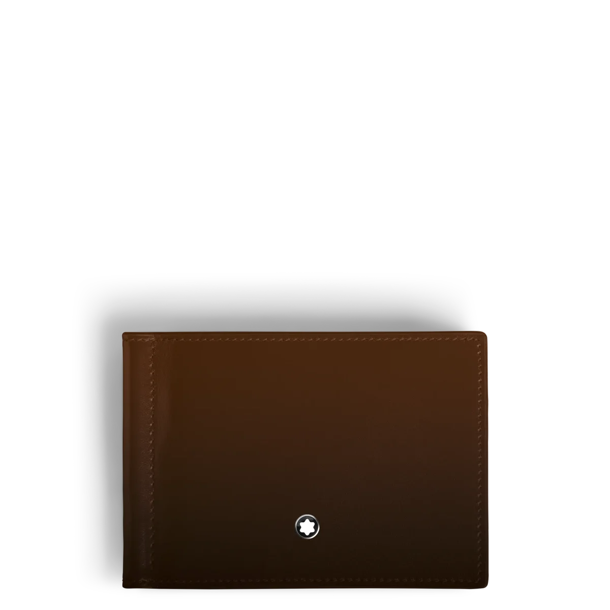 Diese schlanke Brieftasche im Zweiteiler-Design interpretiert ein traditionelles Design mit einem edlen Touch neu. Sie ist aus glattem braunem Meisterstück-Leder gefertigt, das durch einen von Hand aufgebrachten Sfumato-Effekt veredelt wurde, und verfügt über eine elegante Metall-Geldklammer und sechs Kreditkartenfächer, die anspruchsvollen Menschen eine elegante Organisation für den Alltag bieten.