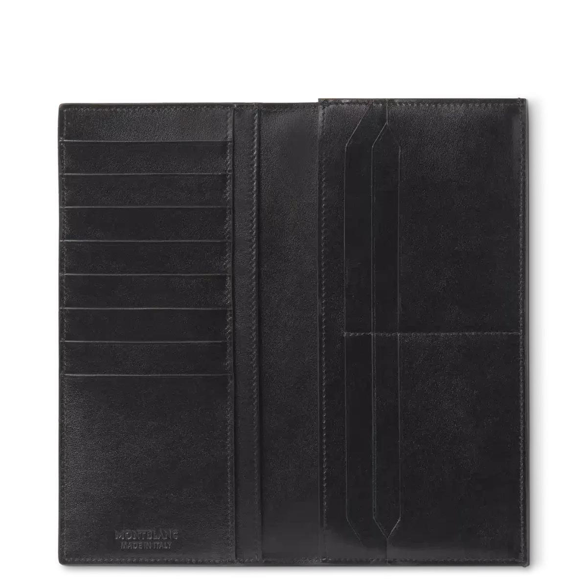 Die Meisterstück 14cc ist eine stilvolle Brieftasche, die mit Blick auf Funktionalität entworfen wurde. Sie verfügt über ein großes Reißverschlussfach zur sicheren Aufbewahrung von Münzen oder wichtigen Utensilien und bietet Platz für 14 Kreditkarten in speziellen Fächern. Die raffinierte Brieftasche verfügt außerdem über zwei Fächer für Banknoten sowie zwei zusätzliche Fächer für Quittungen. Sie ist aus glattem Leder gefertigt, mit schwarzem Stoff gefüttert und mit dem Montblanc Emblem verziert.