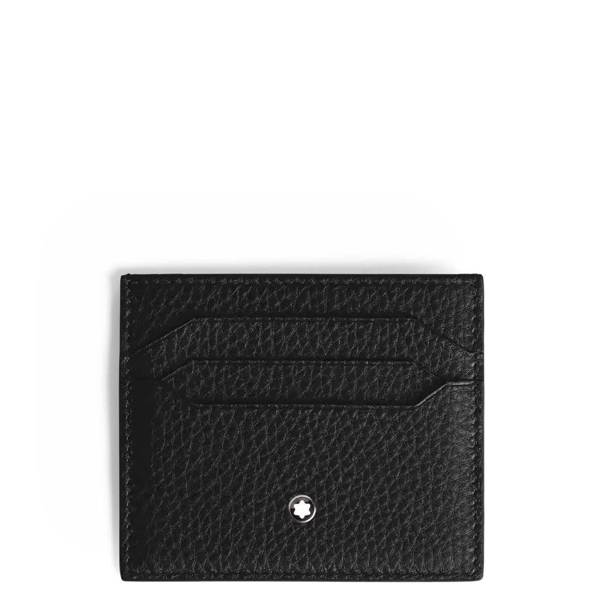 Dieser schlanke Kartenhalter aus elegantem, schwarzem, genarbtem Leder ist eine raffinierte Möglichkeit, Ihrem Alltag einen Hauch von Luxus zu verleihen. Dank seines kompakten Designs passt er mühelos in jede Tasche und bietet Platz für sechs Kreditkarten sowie ein zusätzliches Fach für kleine wichtige Dinge.