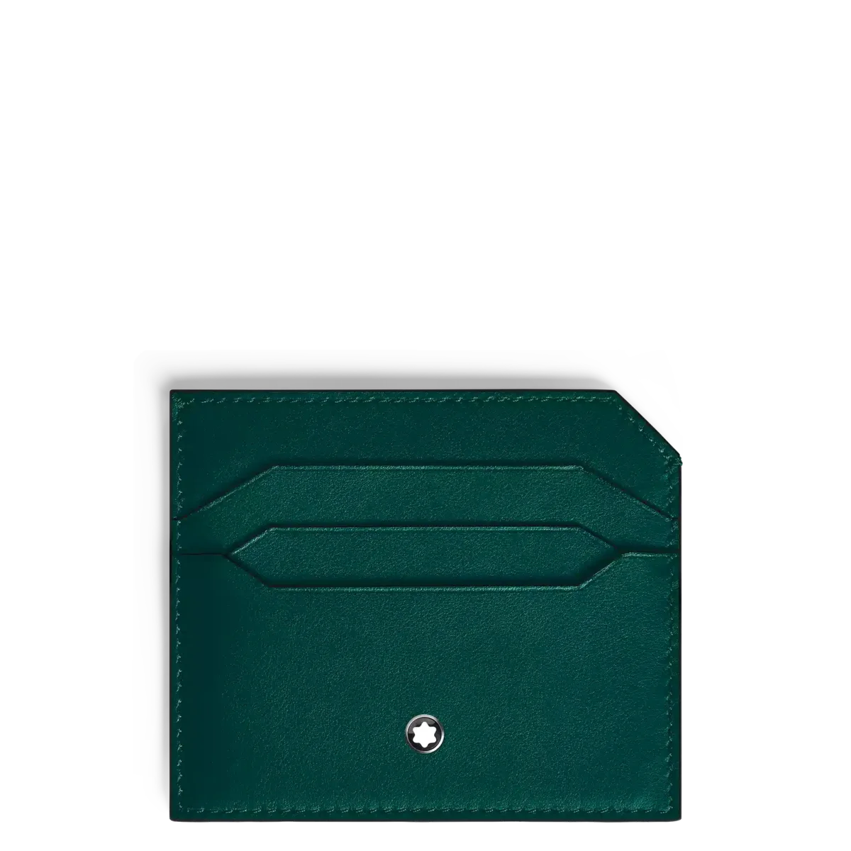 Dieser luxuriöse Kartenhalter aus Leder besticht durch sein praktisches und stilvolles Design und verfügt über sechs Fächer für Kreditkarten oder Visitenkarten sowie ein zusätzliches Fach für gefaltete Notizen oder Quittungen. Er ist aus glattem Leder in Malachit gefertigt und mit dem Montblanc Emblem auf der Vorderseite verziert.