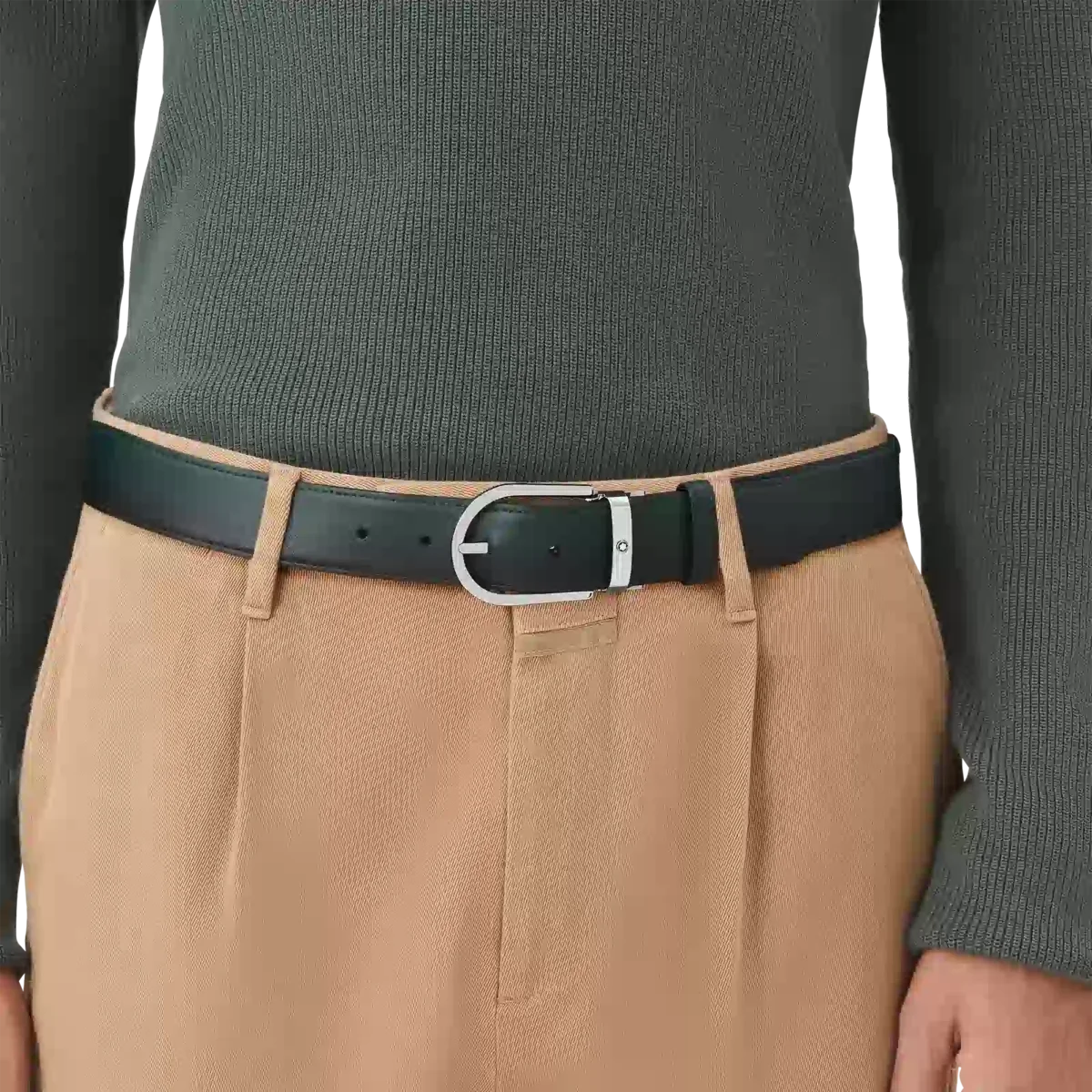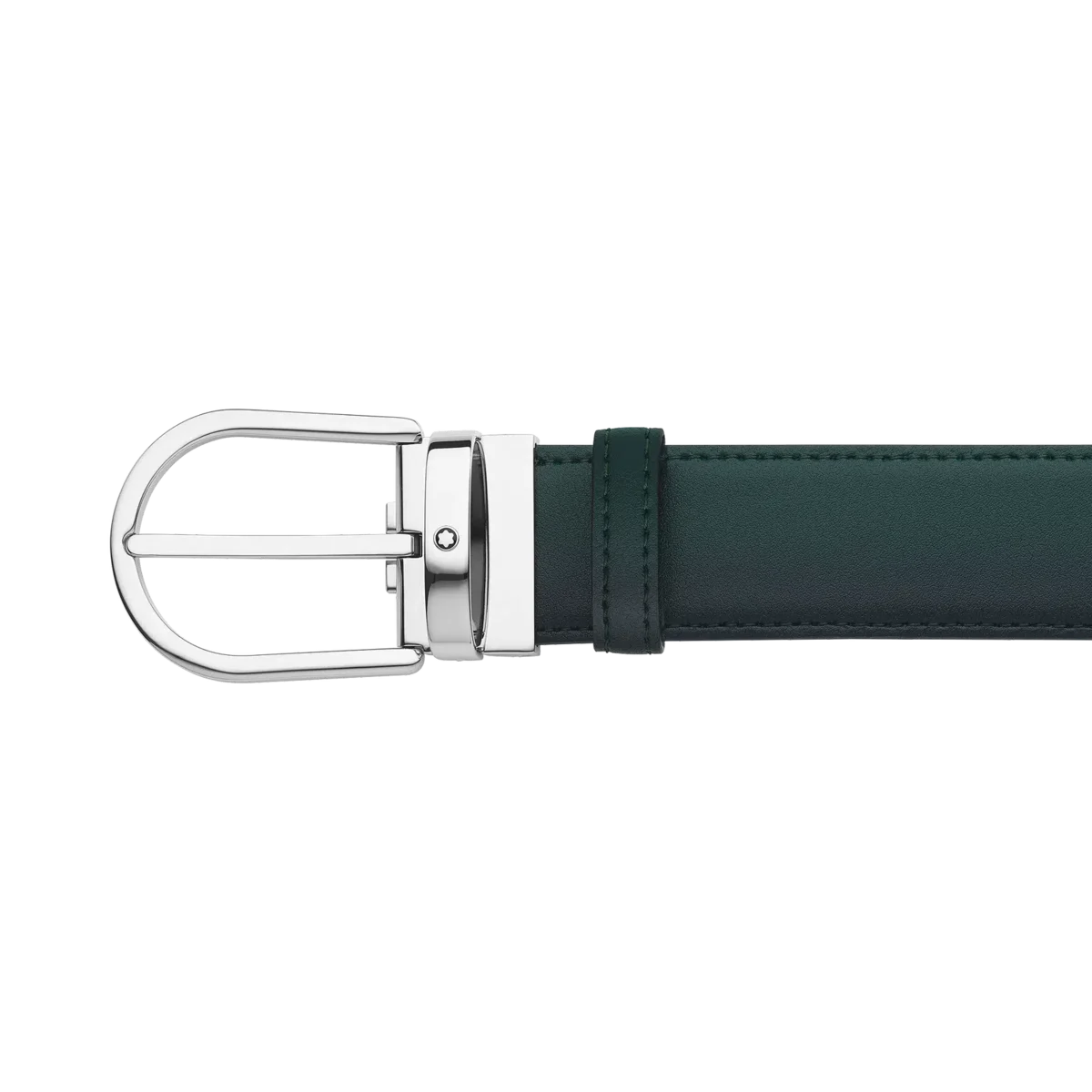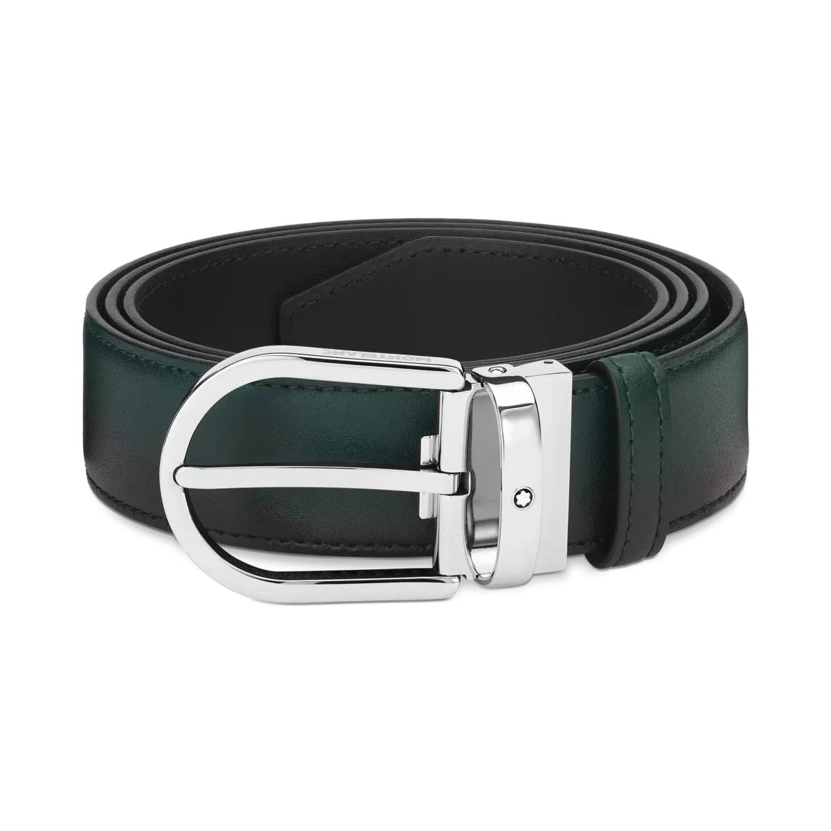 Entdecken Sie alle Details des Ledergürtels mit Hufeisen-Schnalle in Sfumato British Green, 35 mm. Kaufen Sie online im offiziellen Montblanc Store.