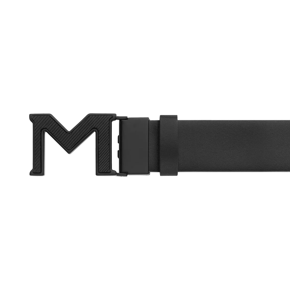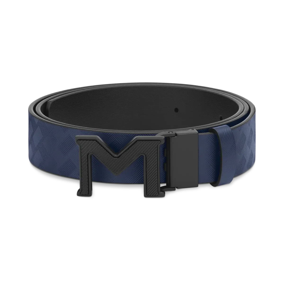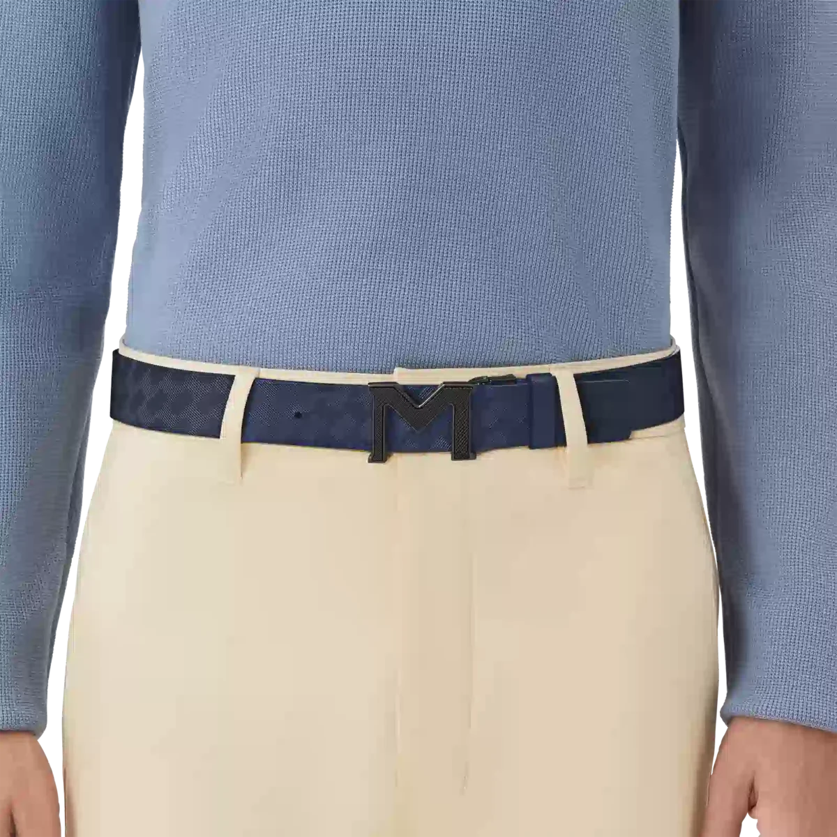 Dieser wendbare Gürtel mit strukturiertem blauem Leder auf der einen Seite und glattem schwarzem Leder auf der anderen Seite ist sowohl sportlich als auch stilvoll. Die markante M-Schnalle ist eine Hommage an das zeitlose Design von Montblanc.