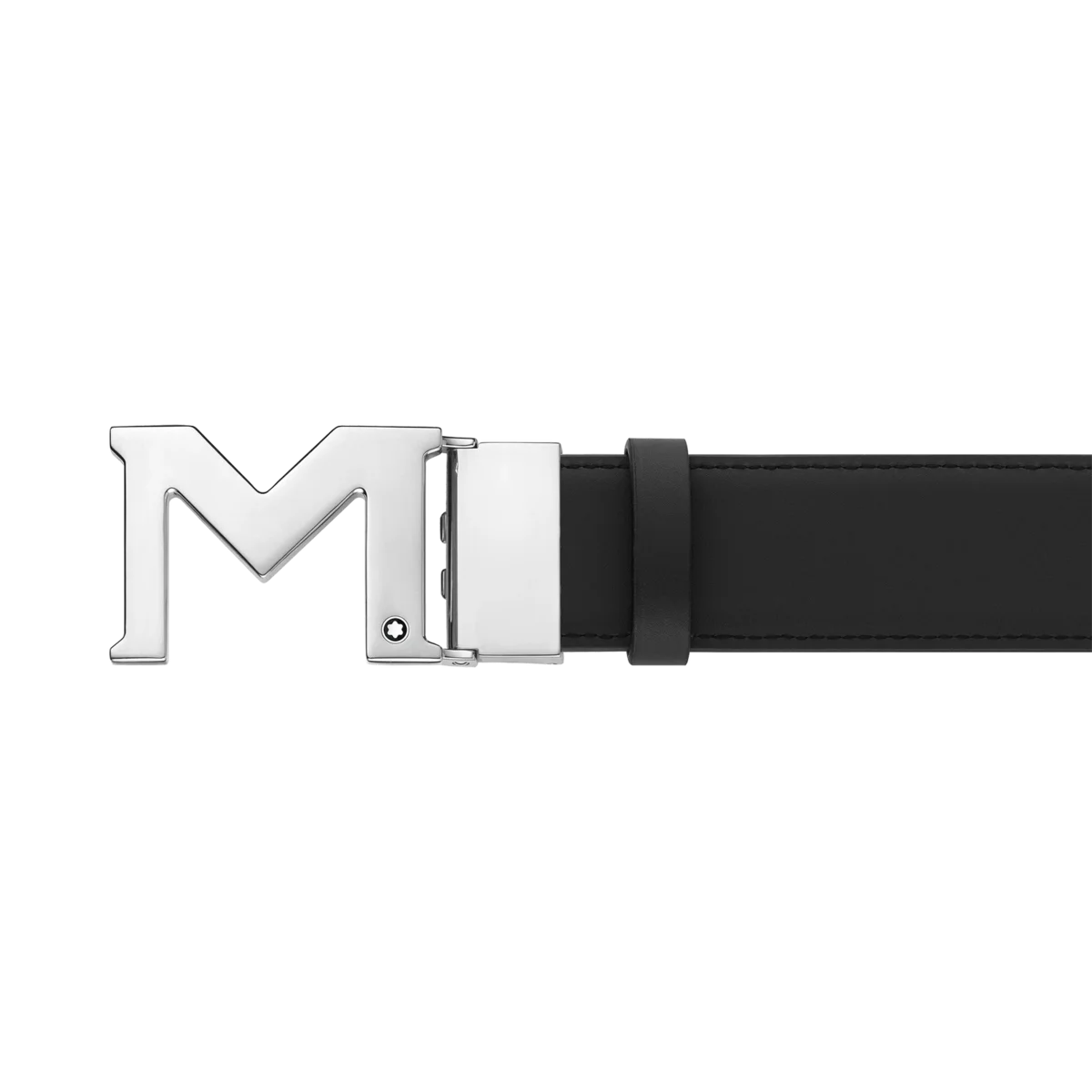 Entdecken Sie alle Details des schwarzen 35-mm-Ledergürtels mit M-Schnalle und Wendefunktion. Kaufen Sie online im offiziellen Montblanc Store.