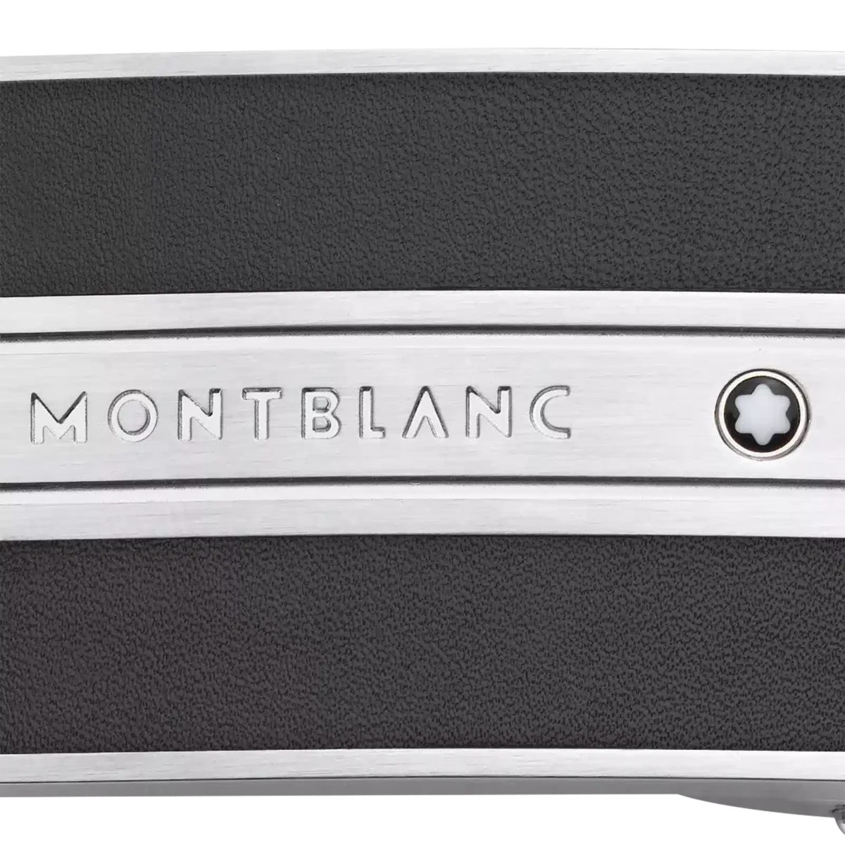 Rechteckige Schnalle mit Palladium-Finish und Meisterstück-Design, eingraviertem Montblanc-Markennamen und Montblanc-Emblem, 3 cm x 120 cm, wendbares schwarz-braunes Lederarmband. Entworfen für einen lässigen und dennoch eleganten Look.