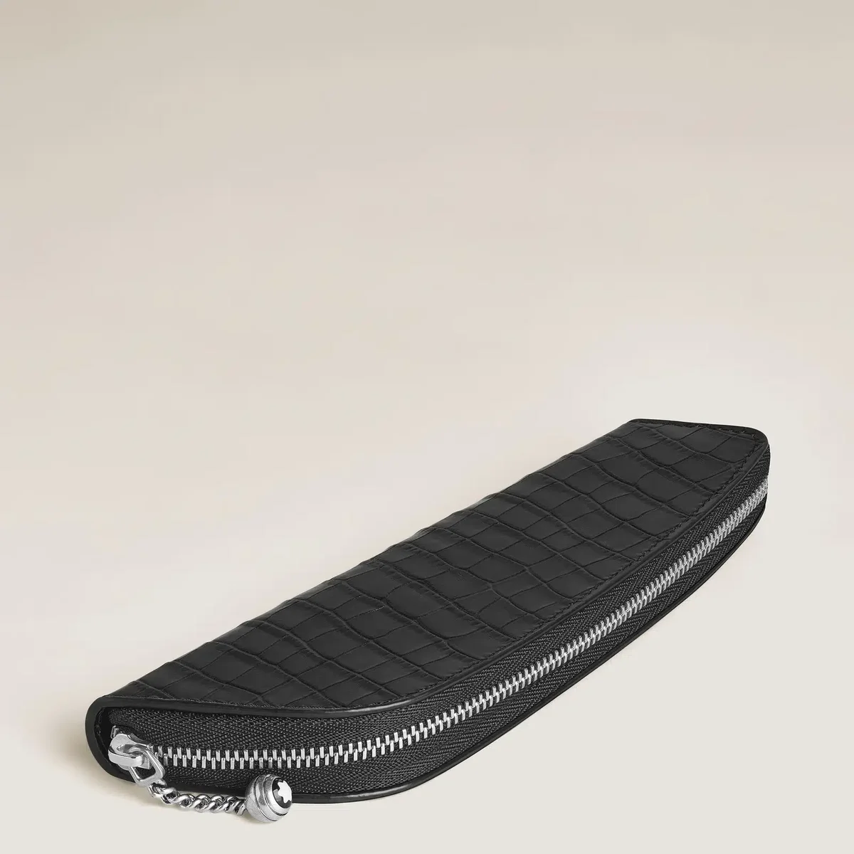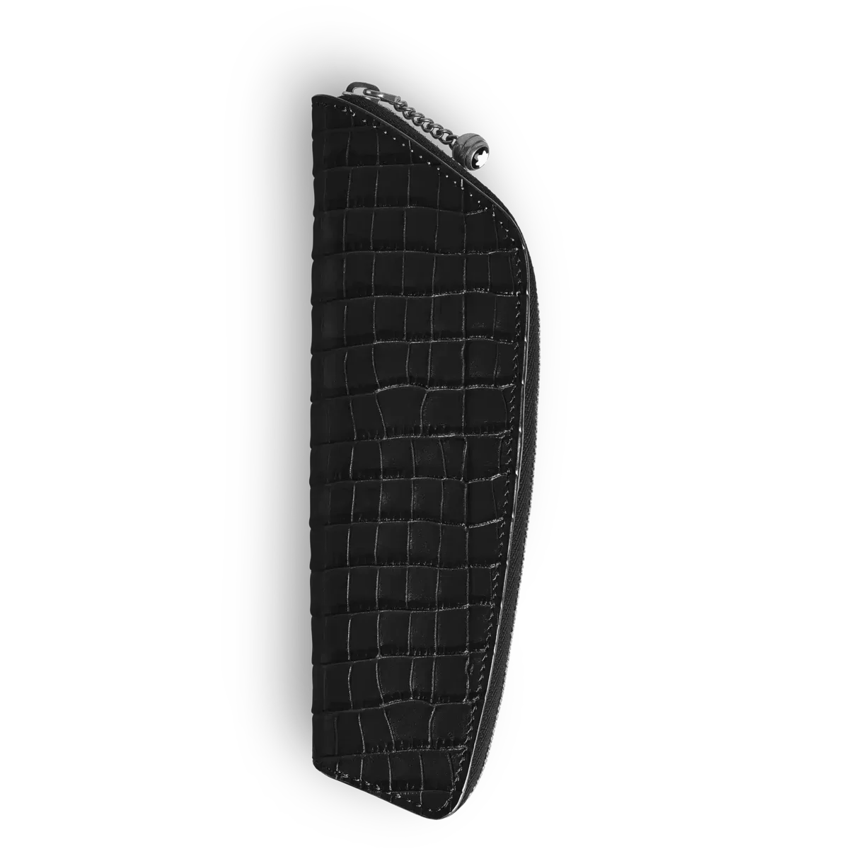 Die Stifttasche zelebriert das Erbe von Montblanc mit einem modernen Touch. Es ist aus schwarzem Leder mit Krokodilprägung gefertigt und verfügt über den charakteristischen Kettenreißverschluss mit kugelförmigem Emblem, der von einem historischen Montblanc-Stifttäschchen inspiriert ist, einer der ersten Lederkreationen der Marke. Dieses elegante Täschchen bietet Platz für ein Schreibgerät, beispielsweise den Meisterstück Classique oder LeGrand, und verbindet unverwechselbaren Stil mit Alltagstauglichkeit.