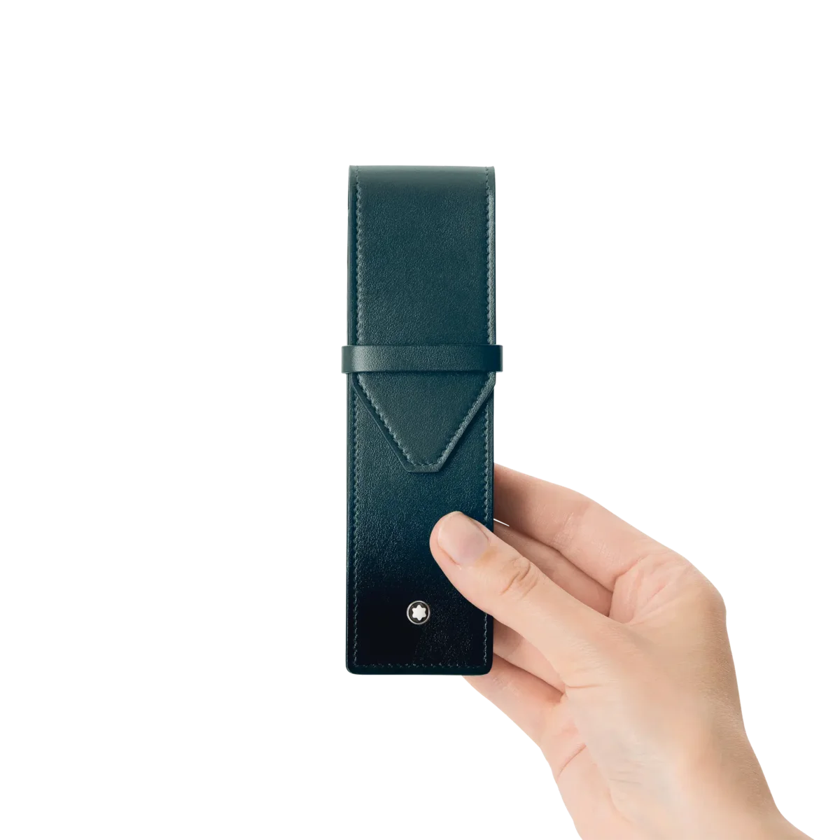 Mit diesem vielseitigen Meisterstück-Stifetasche können Sie Ihre Schreibgeräte stilvoll transportieren. Sie wurde als stilvoller Begleiter für das Büro und darüber hinaus entworfen und bietet Platz für zwei Schreibgeräte. Sie wurde sorgfältig aus edlem britischem grünem Leder mit tiefem Glanz und einem manuell aufgebrachten Sfumato-Effekt gefertigt. Ihr umschlagförmiges Design lässt sich öffnen und gibt den Blick auf ein spezielles Fach frei. Es bietet Platz für zwei Schreibgeräte der Größe Meisterstück LeGrand oder Classique. Achten Sie auf das Montblanc Emblem auf der vorderen Klappe. Bewahren Sie Ihre Stifte sicher auf und setzen Sie mit diesem unverzichtbaren Accessoire ein Statement.