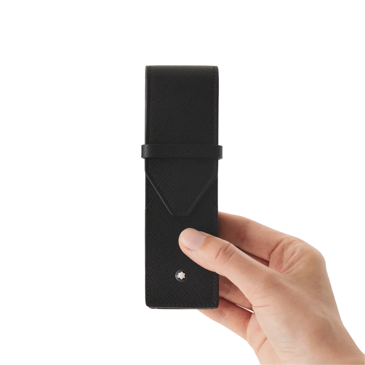 Diese elegante Stifttasche ist ein unverzichtbarer Begleiter für Geschäftsleute und Liebhaber des geschriebenen Wortes und bietet Platz für zwei Schreibgeräte. Ihr Design aus Vollnarbenleder wurde von der Form eines Umschlags inspiriert und zeichnet sich durch überlappende Formen aus.