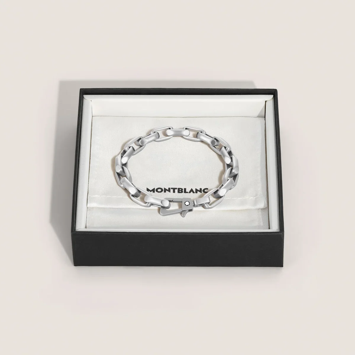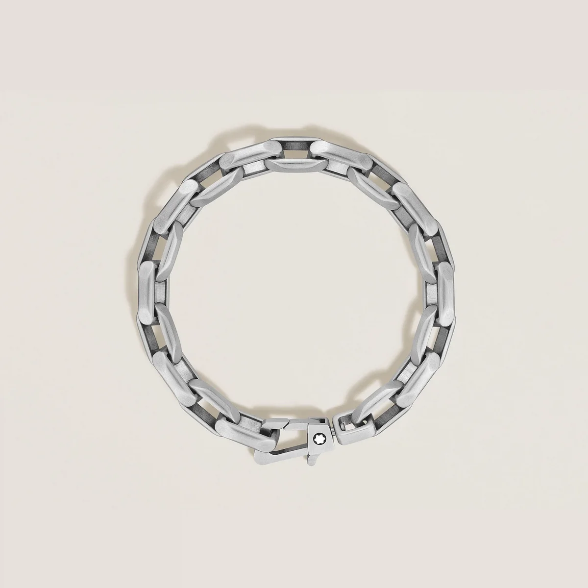 Meisterstück Armband aus Stahl mit achteckiger Kette, der Verschluss ist mit dem Montblanc Emblem verziert.