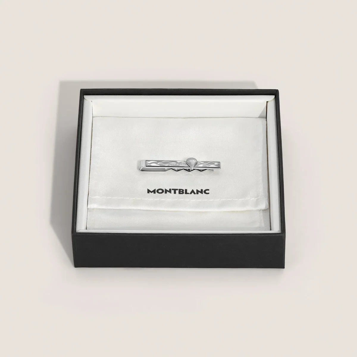 Krawattenklammer aus Stahl, gewidmet der Meisterstück Around the World in 80 Days Kollektion. Das Design ist mit einer Darstellung eines Heißluftballons verziert, eine Anspielung auf Jules Vernes ersten Abenteuerroman.