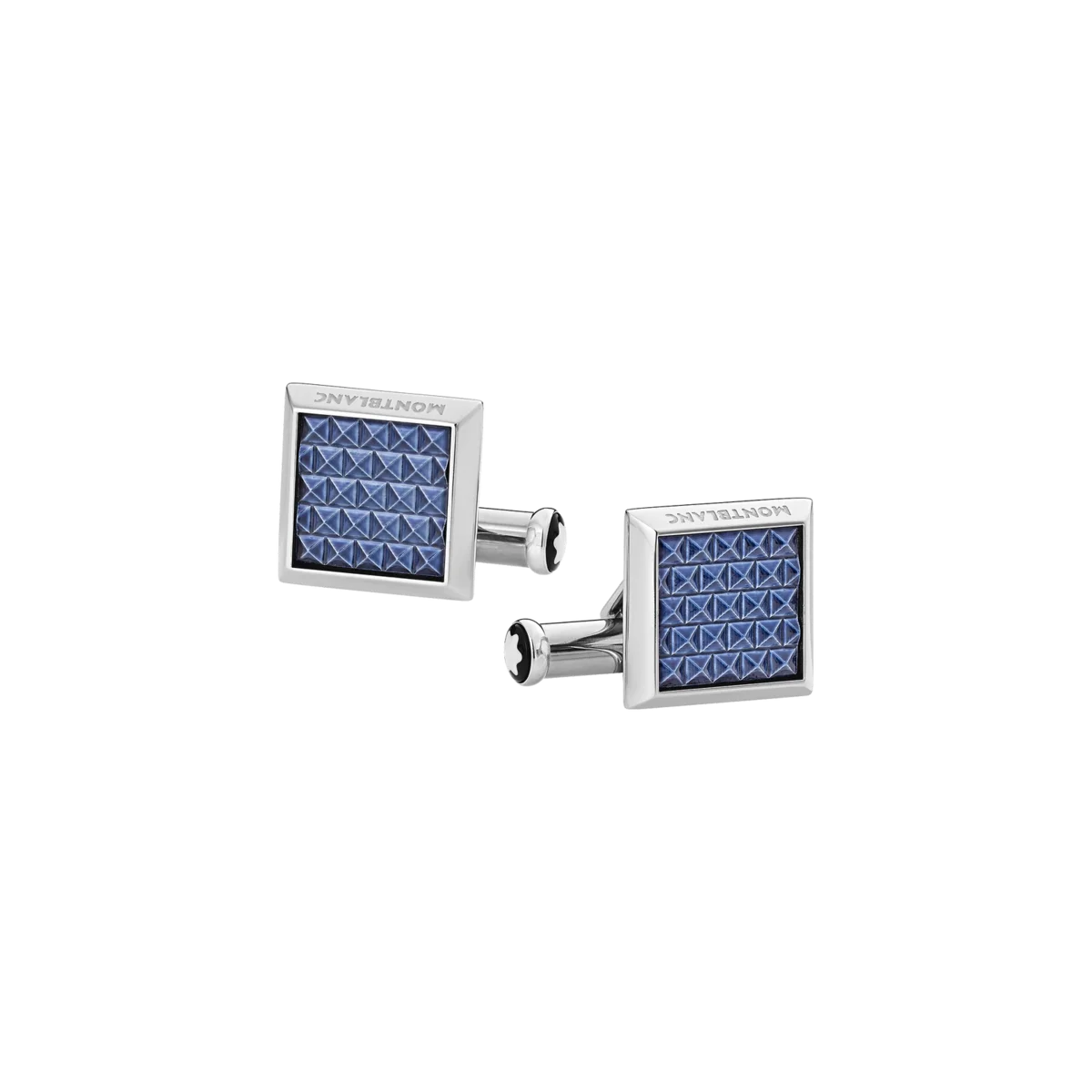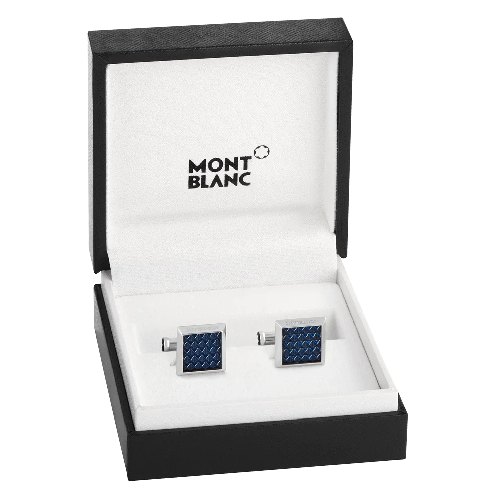 Entdecken Sie alle Details der Manschettenknöpfe, rechteckig aus Edelstahl mit blau gemusterter Einlage. Kaufen Sie online im offiziellen Montblanc Store.