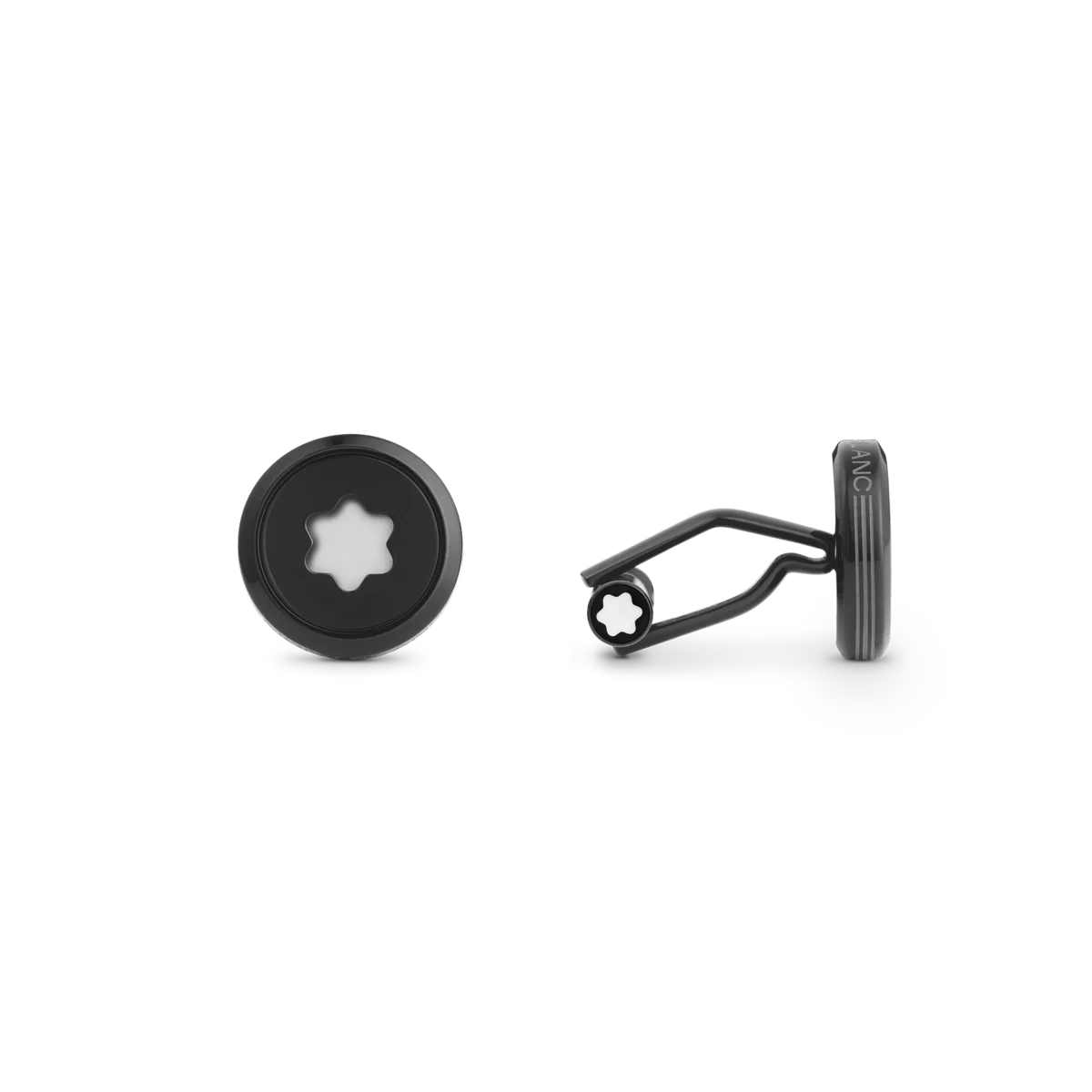 Manschettenknöpfe aus Edelstahl mit schwarzer PVD-Beschichtung. Das Montblanc Emblem ist mit photolumineszierendem Lack überzogen.