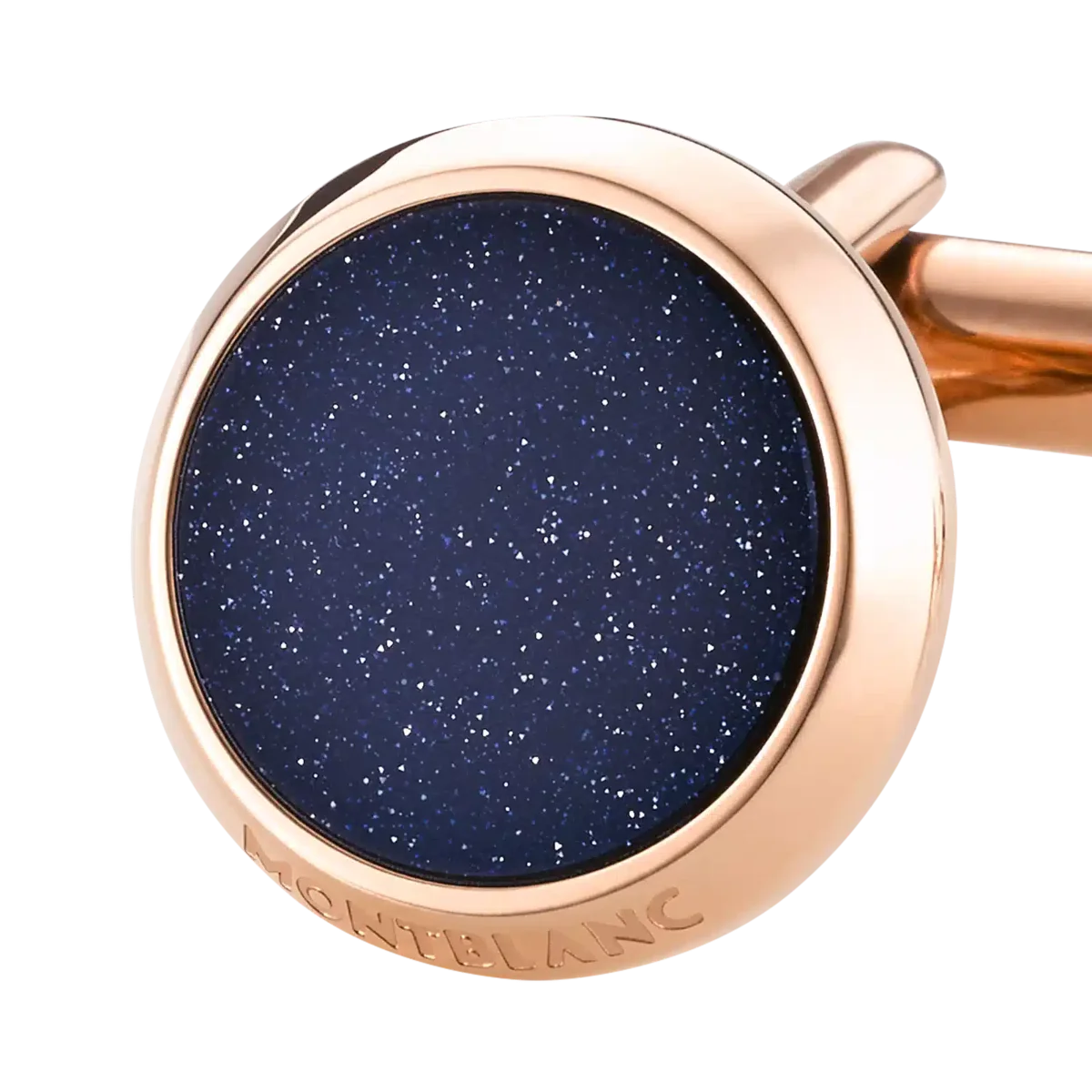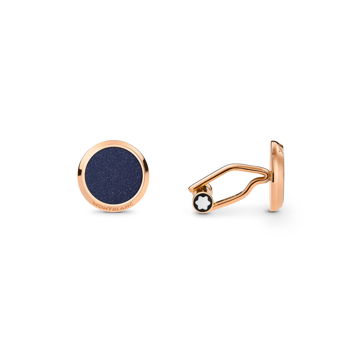 Die Manschettenknöpfe Meisterstück stehen für zurückhaltenden Stil und Eleganz. In Anlehnung an das Schreibgerät Montblanc Meisterstück entsteht durch die zeitlose runde Form aus Edelstahl mit roségoldfarbener PVD-Beschichtung und einer blauen Goldstein-Einlage ein Schmuckstück mit der unverkennbaren Handschrift von Montblanc.