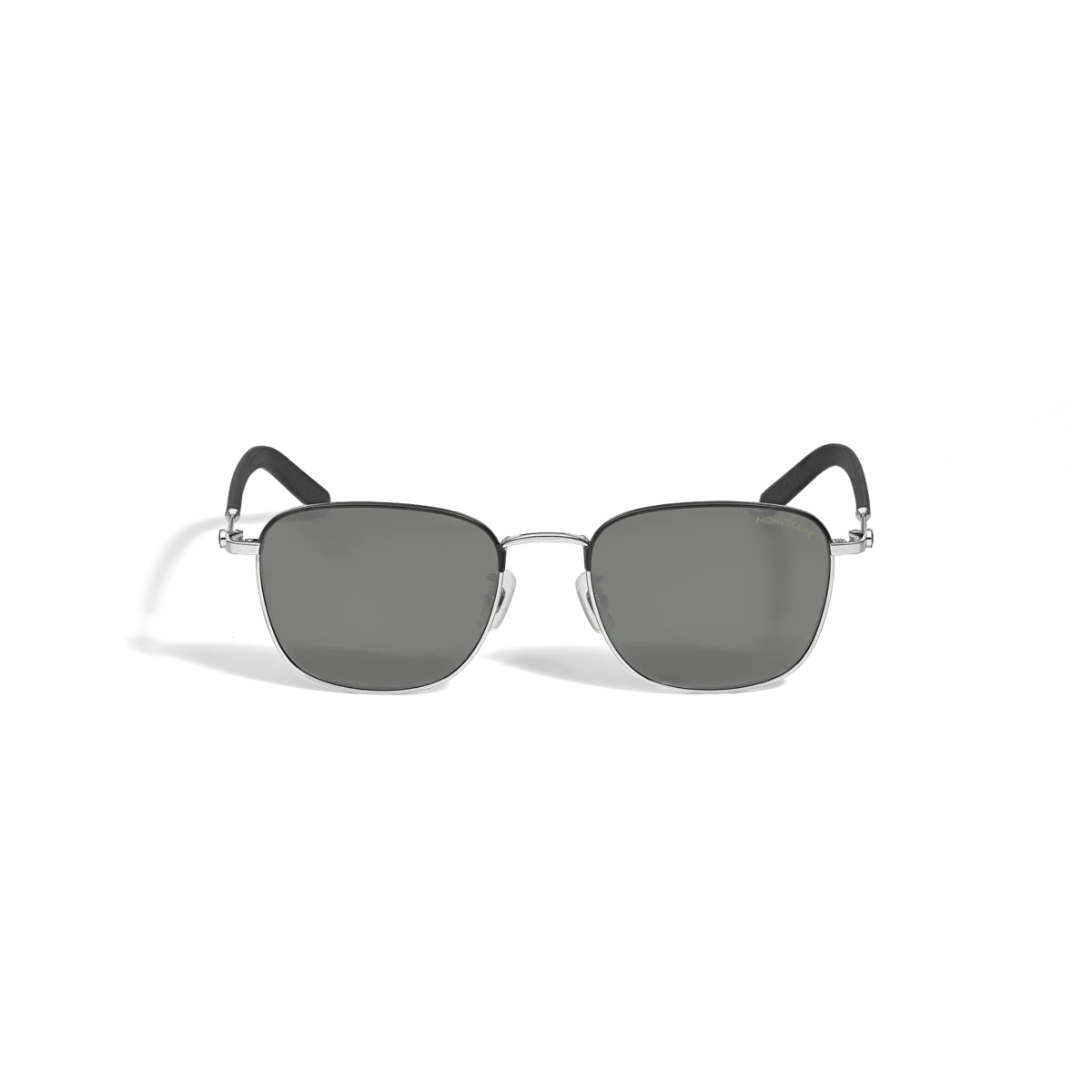 Entdecken Sie alle Details der eckigen Sonnenbrille mit silberfarbenem Metallrahmen. Kaufen Sie online im offiziellen Montblanc Store.