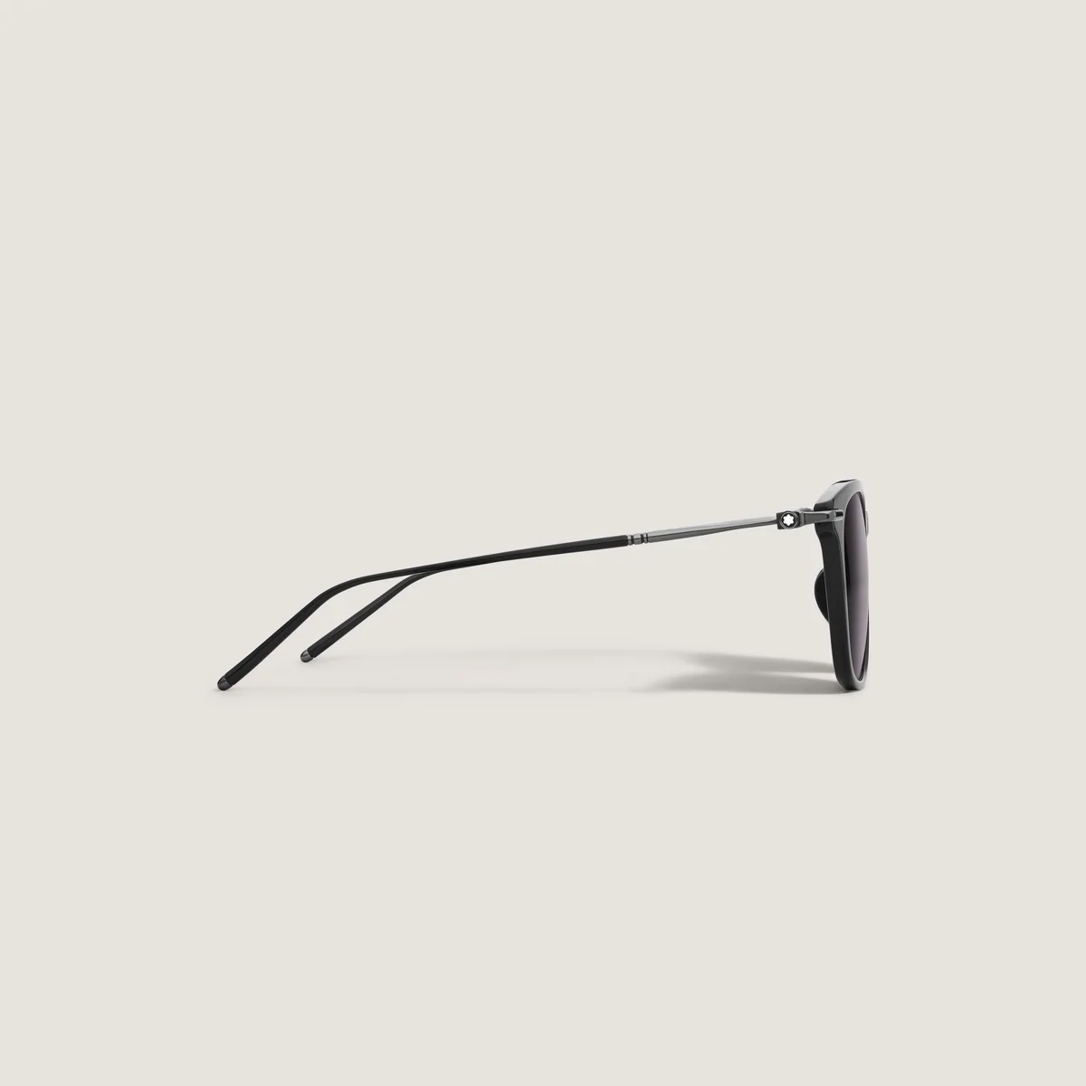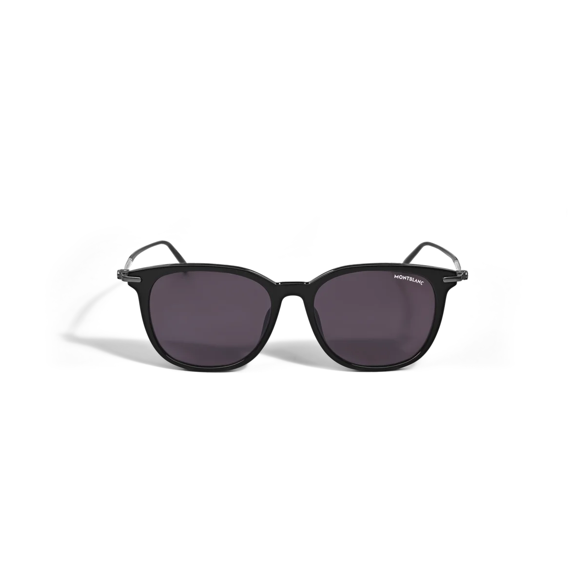 Diese Sonnenbrille im rechteckigen Stil hat einen schwarzen Acetatrahmen und graue Gläser. Die von den Meisterstück Schreibgeräten inspirierten runden Bügel sind mit einem 3-Ringe-Detail verziert. Das Montblanc Logo ist auf das linke Glas gelasert und die Bügelenden sind mit einem schwarzen Emaille-Detail verziert.