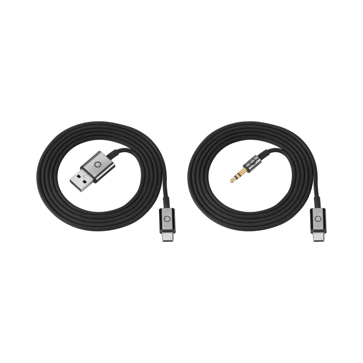 Zusätzliches Kabelset für Ihre Montblanc MB 01 Kopfhörer mit einem schwarzen USB-C-Ladekabel und einem schwarzen Audiokabel.