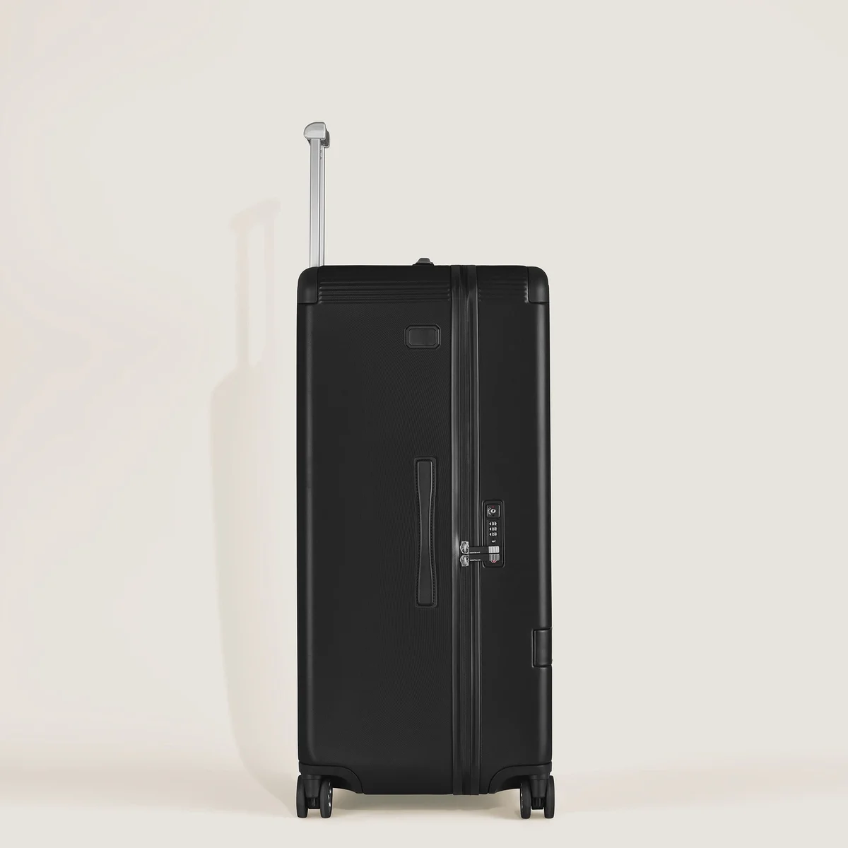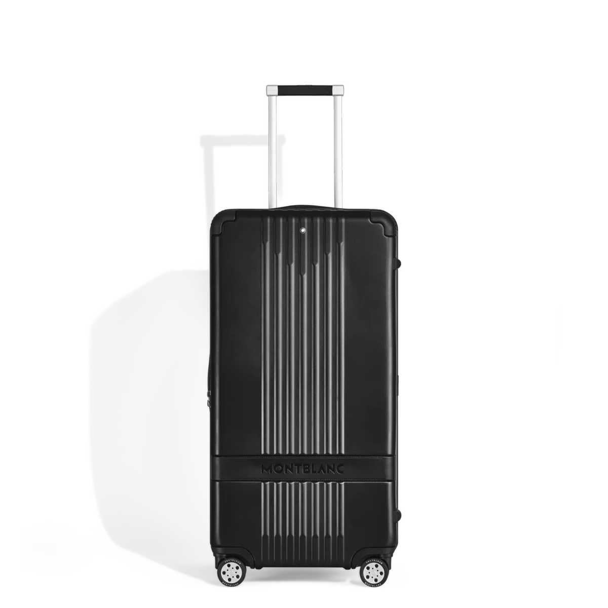 Entdecken Sie die Trolley-Serie #MY4810 und ihr neuestes Mitglied: einen geräumigen Koffer in neuer Form, gefertigt aus leichtem schwarzem Polycarbonat mit edlen schwarzen Lederbesätzen. Dank 4 leisen Kugellagerrollen, stabilen Teleskopgriffen mit Multi-Stop-System und komfortablen Ledergriffen gleiten Sie mühelos dahin. Im Inneren erwartet Sie ein geräumiges Fach für Kleidung mit verstellbarem Gurt auf der einen Seite und einem schwarzen Netz auf der anderen Seite, einem Reißverschluss und einem Visitenkartenfach. Machen Sie Ihren Trolley mit einem Kofferanhänger und einem Personalisierungsanhänger in drei Farben zu Ihrem ganz persönlichen Unikat.
