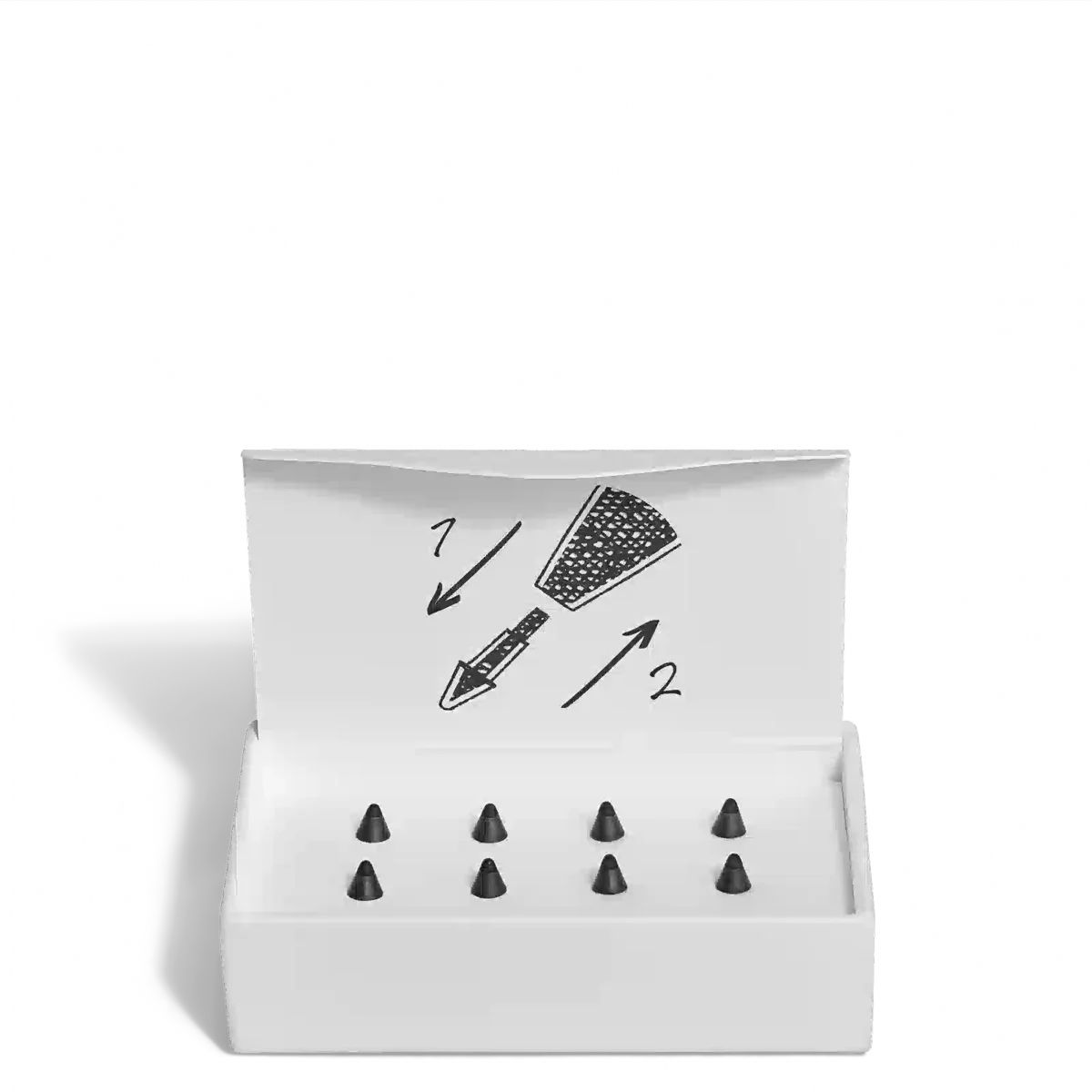 Die Leinen-Spitze bietet ein subtil strukturiertes Schreibgefühl, das an das Schreiben auf edlem Briefpapier erinnert. Sie bietet bei jedem Strich einen sanften Widerstand und lädt zu einem langsameren, bedächtigeren Tempo ein. Ideal für alle, die ein taktiles, ausdrucksstarkes Erlebnis schätzen, verleiht sie jedem geschriebenen Wort eine besondere Präsenz. Packung mit 8 Ersatzspitzen.
