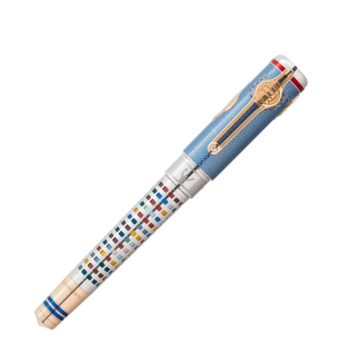 Nur wenige Sportler werden so gefeiert und geehrt wie der dreimalige Weltmeister im Schwergewicht Muhammad Ali, dessen legendäre Momente im Sport und im Kampf für Bürgerrechte ihn zu einem der einflussreichsten Sportler und Menschenfreunde des 20. Als Sportler erschütterte Ali die Welt mit seiner Kraft, seinem Können und seiner Persönlichkeit und wurde mit nur 22 Jahren Weltmeister im Schwergewicht. Seine größten Erfolge erzielte er jedoch durch sein humanitäres Engagement.Die Kappe hat die Form eines Boxsacks mit einer Guilloche-Lackierung und handgravierten Einlagen aus massivem 750er Gold, die einem Boxhandschuh und einer Friedenstaube nachempfunden sind. Auf der Vorderseite sind Alis sechs Grundprinzipien eingraviert. Zu Ehren seines dritten Weltmeistertitels in seiner Boxkarriere ist das Montblanc-Emblem auf der Kappe mit der Zahl 3 aus massivem 750er Gold verziert. Muhammad Alis Siegespose ist neben der Inschrift „TKO-W-7 (15)” (Technischer K.o. in der 7. (von 15) Runde) auf dem goldbeschichteten Kappenring eingraviert. Der Siegesgürtel, den Muhammad Ali mit Stolz trug, inspirierte das Design des skelettierten Clips, der mit „ALI” beschriftet ist.Der Schaft ist vom „Muhammad Ali Center” in Louisville, Kentucky, inspiriert und spiegelt die farbigen Fenster des Gebäudes wider. Der Konus besteht aus massivem 750er Gold mit spezieller Gravur und Lackeinlagen und trägt die Inschrift „NEW ORLEANS 1978 NEW YORK 1998” – eine Anspielung auf wichtige Daten: den Gewinn seines dritten Weltmeistertitels sowie das Jahr, in dem er zum Friedensbotschafter der Vereinten Nationen ernannt wurde. Die limitierte Auflage von 98 Füllfederhaltern ist eine Anspielung auf das Jahr 1998. Ident-Nr. MB129355 Physisches Gewicht 107,01 g Abmessungen 148 mm * 18,5 mm * 18,5 mm
