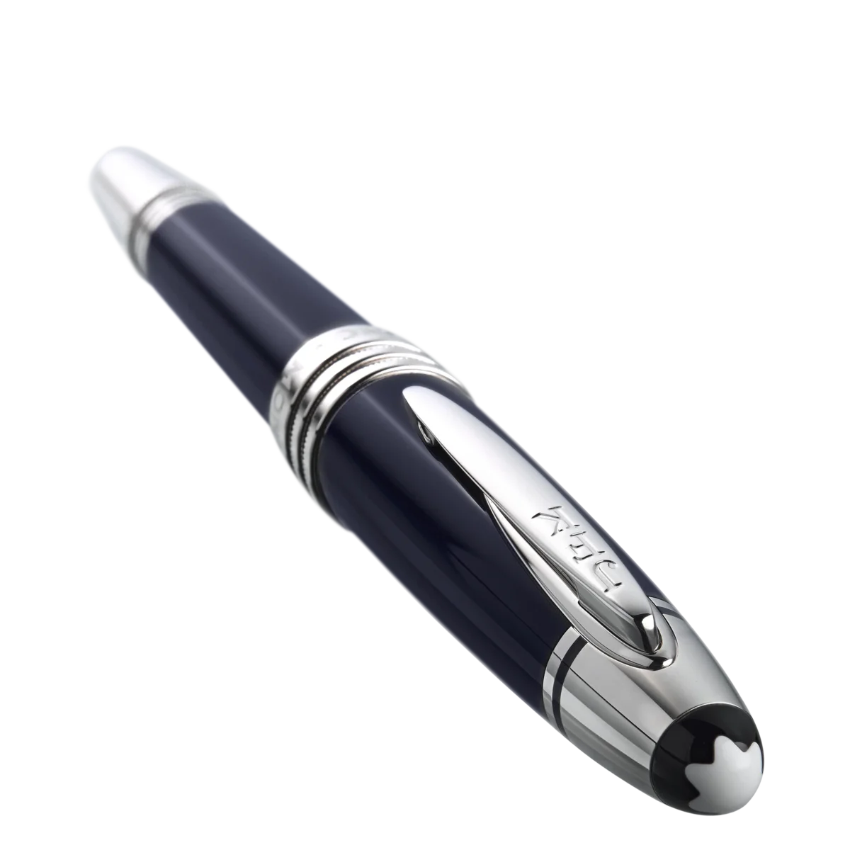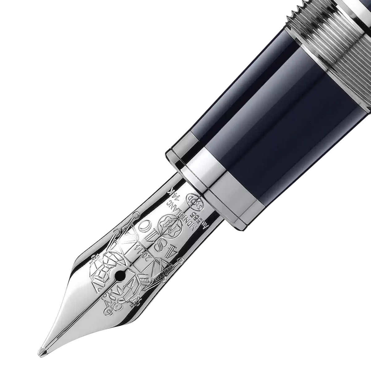 Die Special Edition John F. Kennedy erinnert an eine der am meisten verehrten Persönlichkeiten der modernen Geschichte und nimmt mit subtilen Designdetails symbolisch Bezug auf das Leben von J.F. Kennedy. Das blaue Edelharz steht sowohl für Kennedys Zeit bei der US-Marine als auch für den berühmten Ivy-League-Stil. Seine Initialen „JFK“ sind auf dem platinbeschichteten Clip eingraviert, und die drei platinbeschichteten Kappenringe stehen für Kennedys drei Brüder. Als Hommage an die nationalen Hoffnungen und Träume, die in Kennedys Lieblingsprojekt, dem Apollo-Raumfahrtprogramm, verkörpert sind, ist die handgefertigte Feder aus 585er Gold mit dem Mondmodul graviert, das 1969 auf dem Mond landete. Die Sonderedition wird durch das Montblanc Emblem aus kostbarem Harz gekrönt. Ident-Nr. MB132087 Physisches Gewicht 42,29 g Abmessungen 147,9 mm * 16,5 mm * 16,5 mm