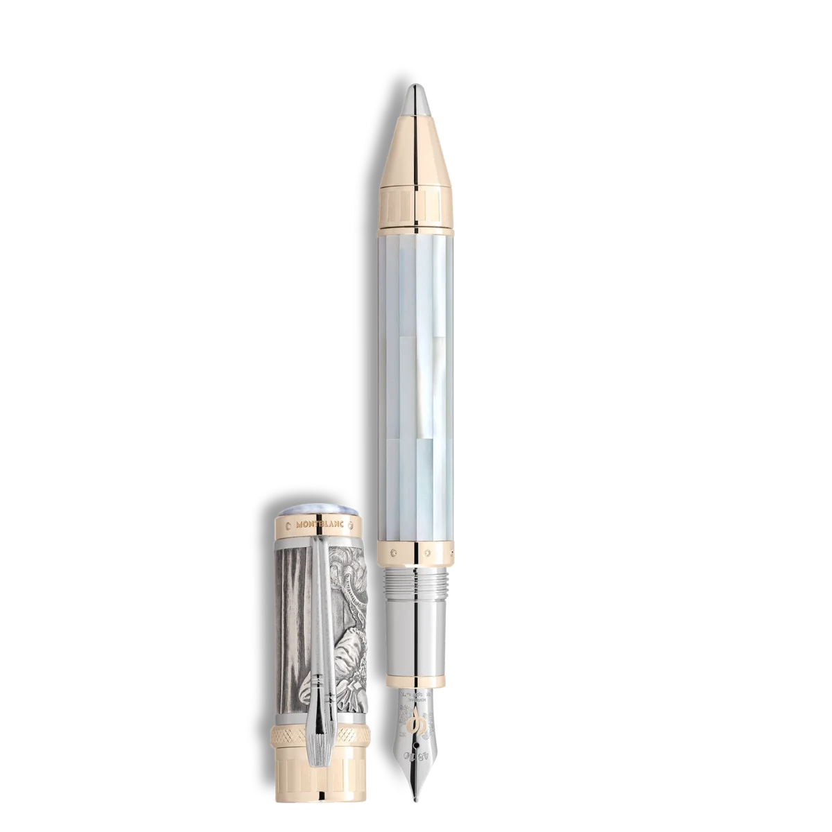 Große Künstler haben im Laufe der Geschichte die menschliche Erfahrung in einer universellen Sprache der Form und Schönheit zum Ausdruck gebracht. Die Montblanc Masters of Art Collection würdigt ihren unvergänglichen Beitrag zum Streben nach Perfektion in der Kunst – ein Streben, das Montblanc sowohl feiert als auch selbst verfolgt. Pierre-Auguste Renoir ist einer der bedeutendsten Vorreiter der Moderne, dessen sonnendurchflutete Gemälde den Ton für eine ganze Bewegung angaben: den Impressionismus. Als Hommage an diesen bedeutenden Pionier der französischen Kunst und seine Meisterwerke (wie „Tanz im Moulin de la Galette” von 1876 und „Das Mittagessen der Ruderer” von 1881) aus seiner sogenannten „période nacrée” – der Perlenperiode – hat Montblanc die Masters of Art Homage to Pierre-Auguste Renoir Limited Edition 161 geschaffen.Der Schimmer dieser „Perlenperiode”, der an Perlmutt erinnert, spiegelt sich in der unkonventionellen Materialauswahl für diese limitierte Auflage wider: Sie besteht aus massivem 750er Gold und 925er Sterlingsilber, gepaart mit Einlagen aus Perlmutt, das selbst Schicht für Schicht unter den Wellen des Ozeans entstanden ist. Die daraus resultierende Struktur, bei der jede Schicht das Licht bricht und ein schillerndes Farbenspiel erzeugt, verleiht Perlmutt eine bemerkenswerte Härte und Ästhetik – Eigenschaften, die es zu einem der faszinierendsten Materialien für Juweliere der Belle Époque machten. Eines der Werke aus Renoirs „Perlmutzeite” ist das 1891 fertiggestellte Gemälde „Frau mit Hut”. Die junge Frau mit ihrem flotten Hut mit breiter Krempe wirkt versunken, vielleicht in eine Melodie, die die meisterhafte Farbkomposition widerspiegelt, die Renoir in diesem Porträt verwendet: ihre zarten Gesichtszüge, der leicht unscharfe Hintergrund oder das Weiß ihrer Rüschenbluse, das von hellen Silberakzenten zu einem dunkleren Gold- und zarten Violettton übergeht. Diese Farbpalette spiegelt sich im gesamten Schreibgerät wider: im Montblanc Emblem aus Perlmutt, das in den schimmernden blau-violetten Streifen aus Chalcedon der aufwendig gearbeiteten Kappe eingelassen ist; in den Beschlägen aus massivem 750er Gold und dem unvergleichlichen dreidimensionalen Relief aus 925er Sterlingsilber auf der Kappe; im Schillern der Perlmutt-Intarsien auf dem Schaft. Der Ring der Kappe aus massivem 750er Gold ist mit der Jahreszahl 1888 graviert, die den Beginn von Renoirs „Perlperiode” markiert. Ein auffälliges Merkmal ist der platinbeschichtete Clip in Form von zwei Pinseln, wie sie Renoir verwendete, um sowohl die feinen Details als auch die großflächigeren Bereiche seiner Meisterwerke zu malen.Als Hommage an Renoirs zeichnerisches Können ist eine Silberstift-Spitze aus weichem 925er Sterlingsilber in den massiven 750er Goldkegel integriert, mit der man eigene Silberstift-Skizzen anfertigen kann. Renoir verwendete während seiner „Perlperiode” eine Kombination verschiedener Maltechniken, um das Motiv der „Jungen Mädchen am Klavier” zu schaffen. Um die Ausgewogenheit und Ästhetik der Szene zu betonen, ließ sich Renoir vom Prinzip des Goldenen Schnitts leiten. Diese „göttliche Proportion“ (1,618…), das Versprechen perfekter Schönheit durch mathematische Mittel, findet sich sowohl in der Natur als auch in der Komposition vieler der weltweit am meisten bewunderten Kunstwerke – und beschreibt auch das Verhältnis von Kappe zu Schaftgröße in der Sammlerlinie „Masters of Art“. Dieser Schlüssel zur Harmonie wird durch den griechischen Buchstaben Phi dargestellt, der die teilweise rhodinierte, handgefertigte Feder aus massivem 750er Gold ziert und von zarten Blumensträußen umrahmt wird, die so oft in Renoirs wichtigsten Werken zu finden sind. In Anlehnung an den Goldenen Schnitt, der der harmonischen Komposition vieler seiner Meisterwerke zugrunde liegt, ist die Masters of Art Homage to Pierre-Auguste Renoir Limited Edition auf 161 Stück limitiert.