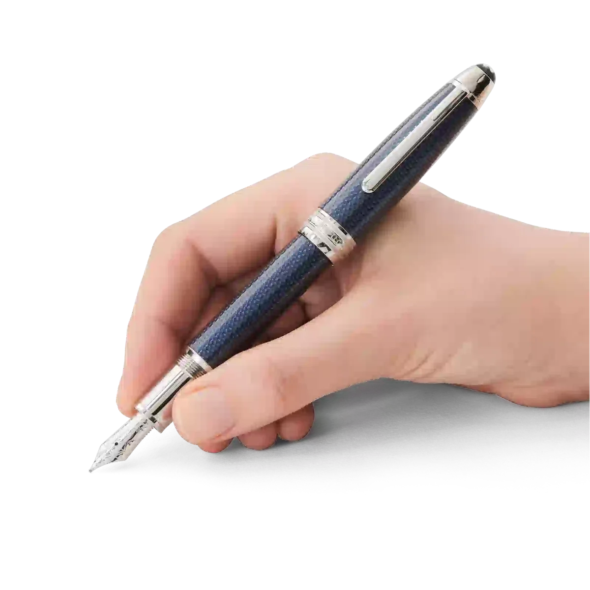 Der Meisterstück Solitaire Blue Hour LeGrand präsentiert sich als kostbares, blau lackiertes Solitaire-Produkt mit platinbeschichteten Beschlägen. Die magische Stunde zwischen Tageslicht und Nacht – die Blaue Stunde – schafft einen sanften Kontrast und eine atemberaubende Stimmung, die als Inspiration für das Design diente. Das Sechseckmuster auf der handgefertigten, rhodinierten Goldfeder sowie auf dem Schaft und der Kappe spiegelt die Lichtreflexionen und den nächtlichen Verkehr in Großstädten wider.