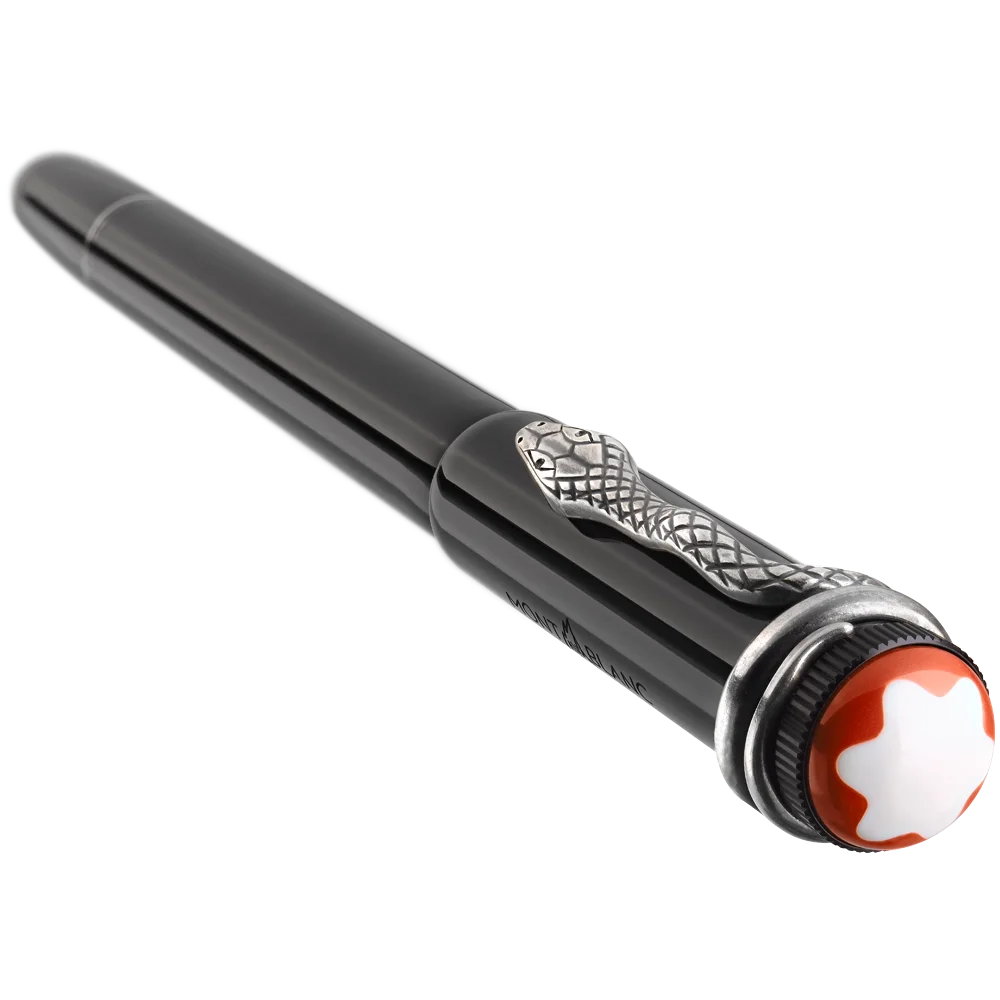 Als er 1906 entwickelt wurde, galt der exklusive Füllfederhalter „Rouge et Noir” als herausragende technische Errungenschaft, da er eine einfache Handhabung ermöglichte, ohne dass die Feder in ein Tintenfass getaucht werden musste. Die Heritage Collection Rouge et Noir zelebriert den 110 Jahre alten Pioniergeist von Montblanc. Als Neuinterpretation des legendären Schreibgeräts zeichnet sie sich durch eine längere, schlankere Silhouette, moderne Kolbenfülltechnik und über Generationen verfeinerte Handwerkskunst aus. Der Schaft des exklusiven Füllfederhalters besteht aus schwarzem Edel-Lack in Kombination mit einer Kappe aus schwarzem Edelharz. Schlangenclip im Vintage-Look mit passenden Beschlägen. Der Clip wird in einem Stanz- und Wickelverfahren aus einer speziellen Metalllegierung hergestellt und durch einen einzigartigen galvanischen und Abbeizprozess gealtert. Ident-Nr. MB132108 Physikalisches Gewicht 150 g Abmessungen 136 mm * 16 mm