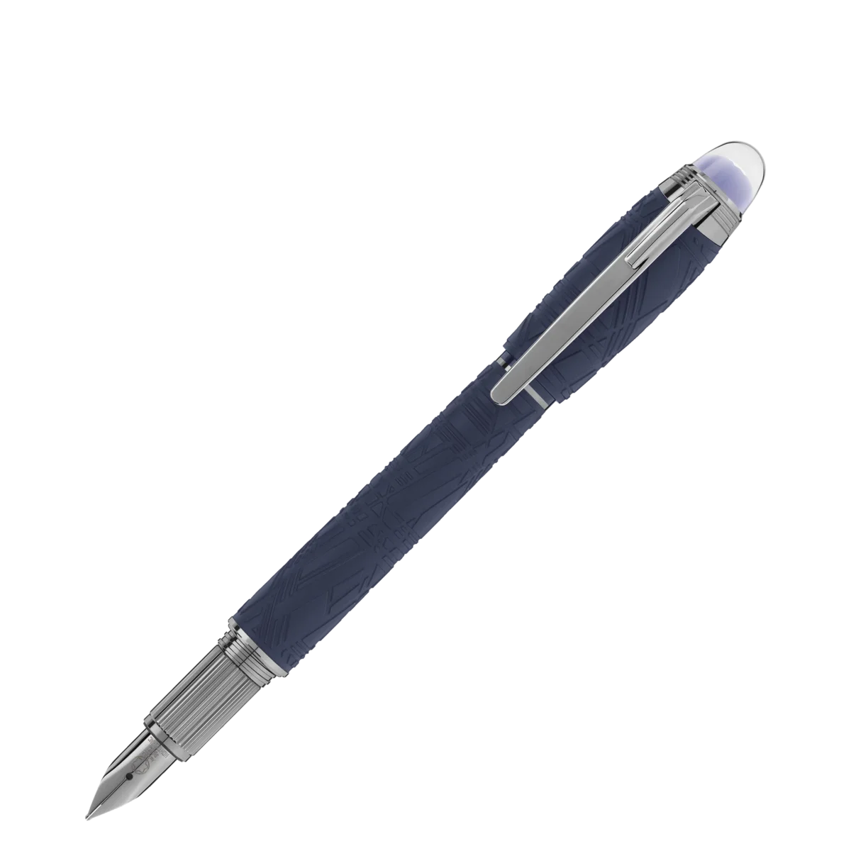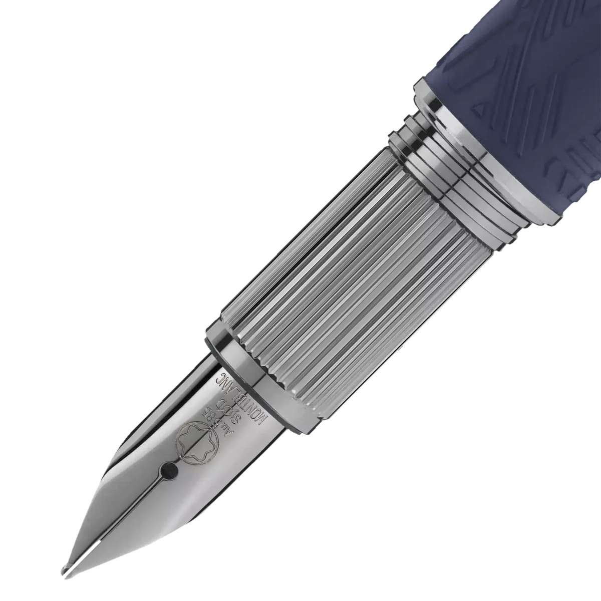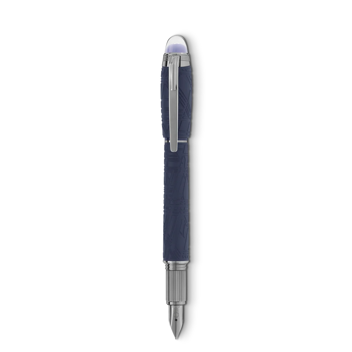 StarWalker SpaceBlue blickt über den Planeten Erde hinaus und wendet sich den Sternen und der Galaxie zu. Diese neue StarWalker-Kollektion verleiht der Kappe und dem Schaft aus Harz einen neuen Look mit einem Design, das an die komplexen Strukturen des Widmanstätten-Musters erinnert, einer der faszinierendsten Schöpfungen der Natur. Alle Metallteile sind mit dunklem Ruthenium beschichtet, begleitet von einem tiefen Weltraumblau für das matte Edelharz, das an die Farbtöne eines Sternenhimmels erinnert. Darüber hinaus ist die Kuppel auf der Kappe, über der das Montblanc-Emblem schwebt, in einem tiefen Weltraumblau gehalten. Der Füllfederhalter ist handgefertigt und verfügt über eine rutheniumbeschichtete Feder aus 585er Gold. Ident-Nr. MB130210 Physikalisches Gewicht 28,3 g Abmessungen 135,7 mm * 14,9 mm