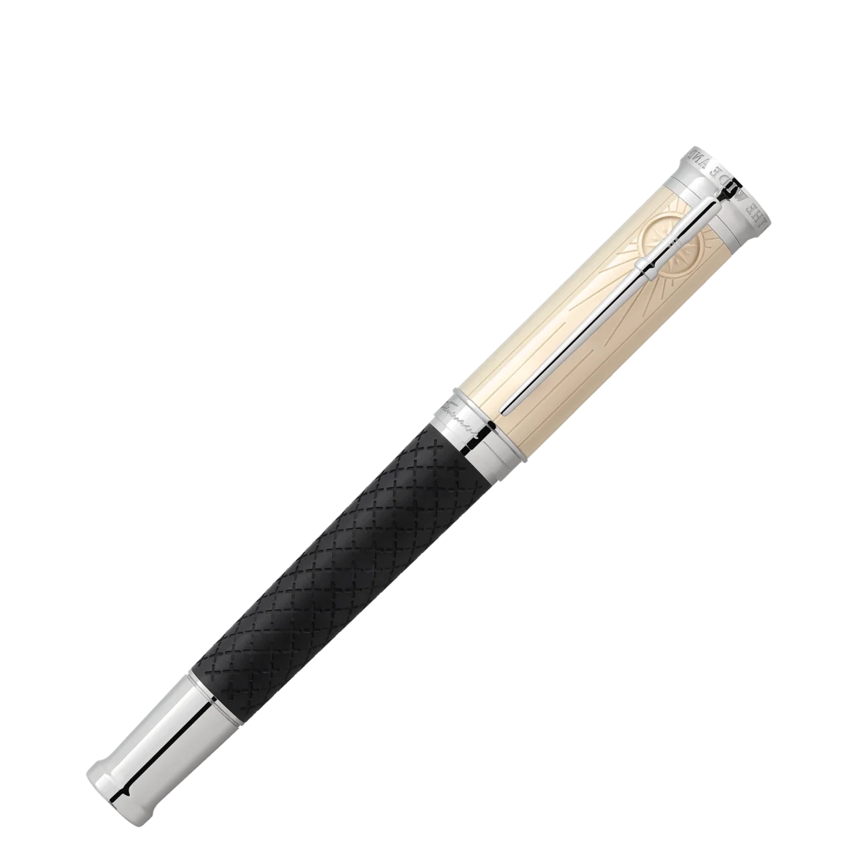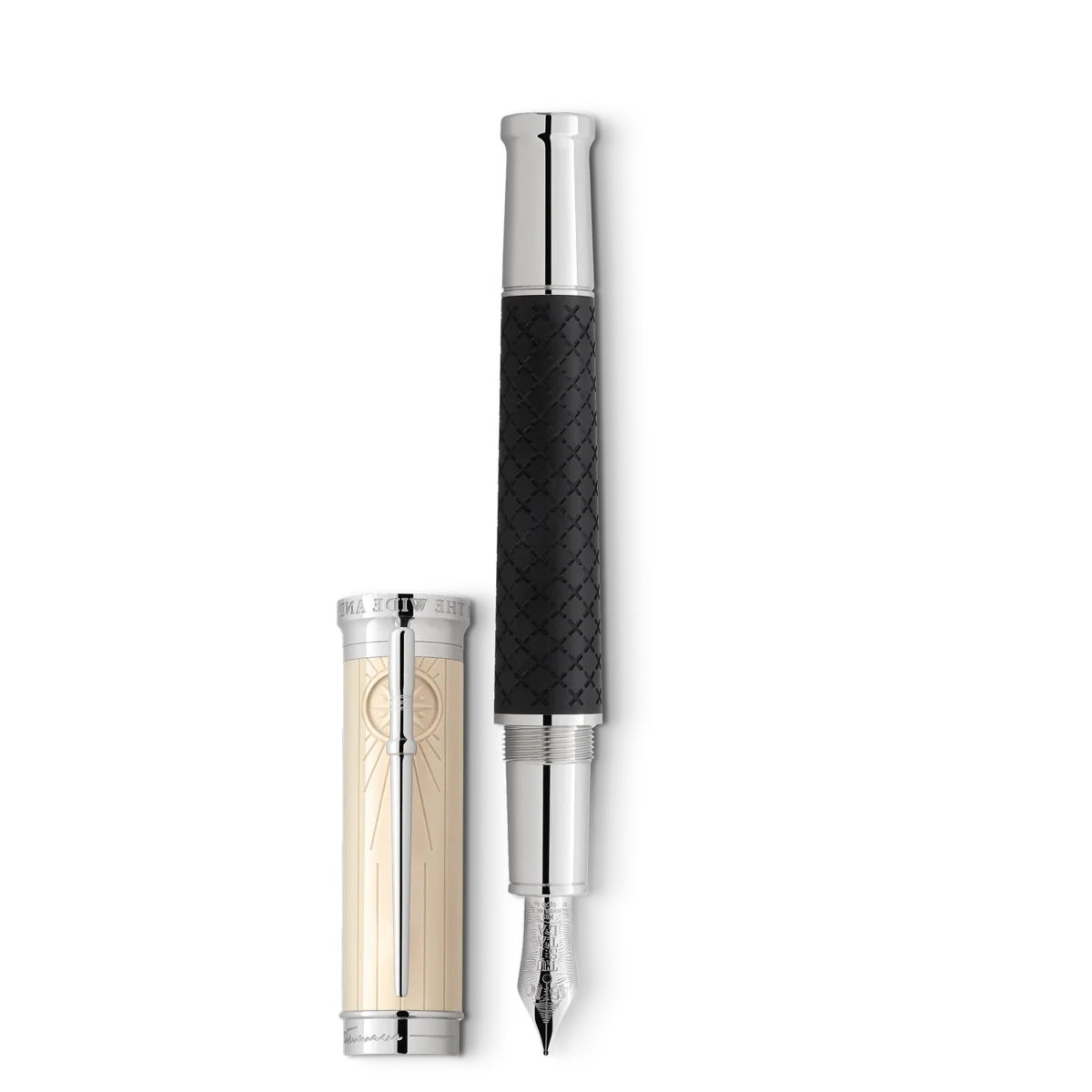 Robert Louis Stevenson, geboren 1850 in Edinburgh, Schottland, hatte zwei große Wünsche: Freiheit und das Eintauchen in andere Welten. Er verfasste Essays und Reiseberichte sowie seine legendären Abenteuergeschichten, die von markanten Figuren bevölkert sind, deren Namen Lesern auf der ganzen Welt einen Schauer über den Rücken jagen: Long John Silver, Captain Flint, Jekyll und Hyde. Die Montblanc Writers Edition Homage to Robert Louis Stevenson ist diesem fantasievollen Geschichtenerzähler gewidmet. Der Roman „Die Schatzinsel“ inspirierte viele Designdetails der Edition. Die Gesamtform des Schreibgeräts und die Ringe auf dem Konus vermitteln den Eindruck eines historischen, ausziehbaren Fernrohrs. Der schwarze Schaft aus Edelharz ist mit eingravierten Kreuzen verziert, darunter ein größeres „X“, wie es die Position des Schatzes auf einer Karte markiert. Vertikale Linien, die an die Planken des Schoners „Hispaniola“ und eine traditionelle Seekiste erinnern, zieren die Kappe der Writers Edition. Hinter dem platinbeschichteten Clip laufen die Linien in einer Kompassrose zusammen, während der Clip die Form eines Belaying-Pins imitiert, an dem die Leinen der Takelage eines Schiffes befestigt würden. Die Kappe wird von dem Montblanc-Emblem gekrönt, das mit dem Symbol der Piraten, einem Totenkopf mit gekreuzten Knochen, verziert ist, der in der Mitte hervorgehoben ist. Der Kappenring ist mit einer Gravur von Stevensons Unterschrift neben dem Erscheinungsdatum seines ersten Werks „The Pentland Rising“ aus dem Jahr 1866 verziert. Die Daten 1850–1894 sind auf der Kappe eingraviert, um an das Leben von Robert Louis Stevenson zu erinnern. Als Hinweis auf Robert Louis Stevensons Leidenschaft für die Seefahrt und seine Neuansiedlung in der Südsee ist die handgefertigte, rhodinierte Feder aus massivem 750er Gold mit feinen Wellen und dem Titel „Tusitala” graviert, den die Samoaner dem großen Schriftsteller und Weltreisenden gaben.