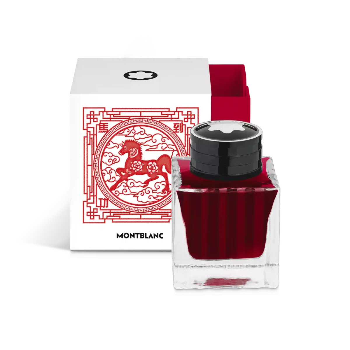 Montblanc Tintenflasche, The Legend of Zodiacs, The Horse, Rot – 50 ml Die Tintenflaschen der Montblanc Special Edition werden in einer quadratischen Verpackung geliefert, die an die Konzepte und Themen der jeweiligen Kollektion erinnert und sie zu wertvollen Sammlerstücken für Montblanc-Liebhaber macht.