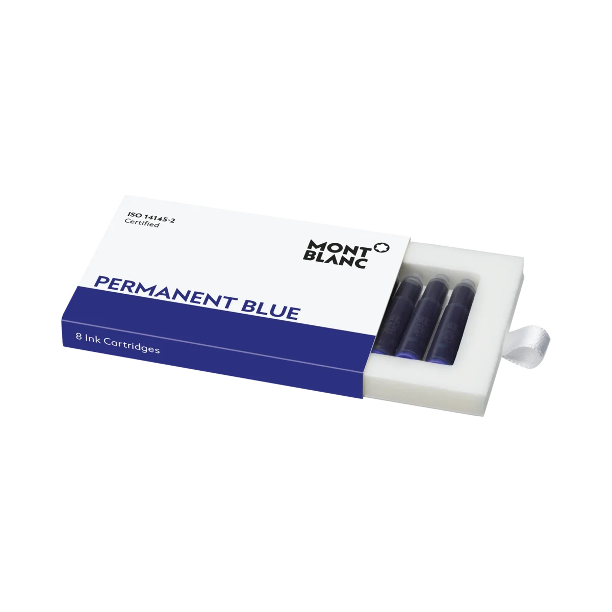 Geeignet für alle Montblanc Füllfederhalter mit Patronensystem. Montblanc Permanent-Tinten, „Permanent Black“ und „Permanent Blue“, sind gemäß DIN ISO 14145-2 geprüft und für den dokumentenechten Gebrauch geeignet. Verpackungseinheiten = 8 Patronen