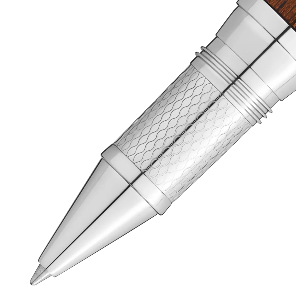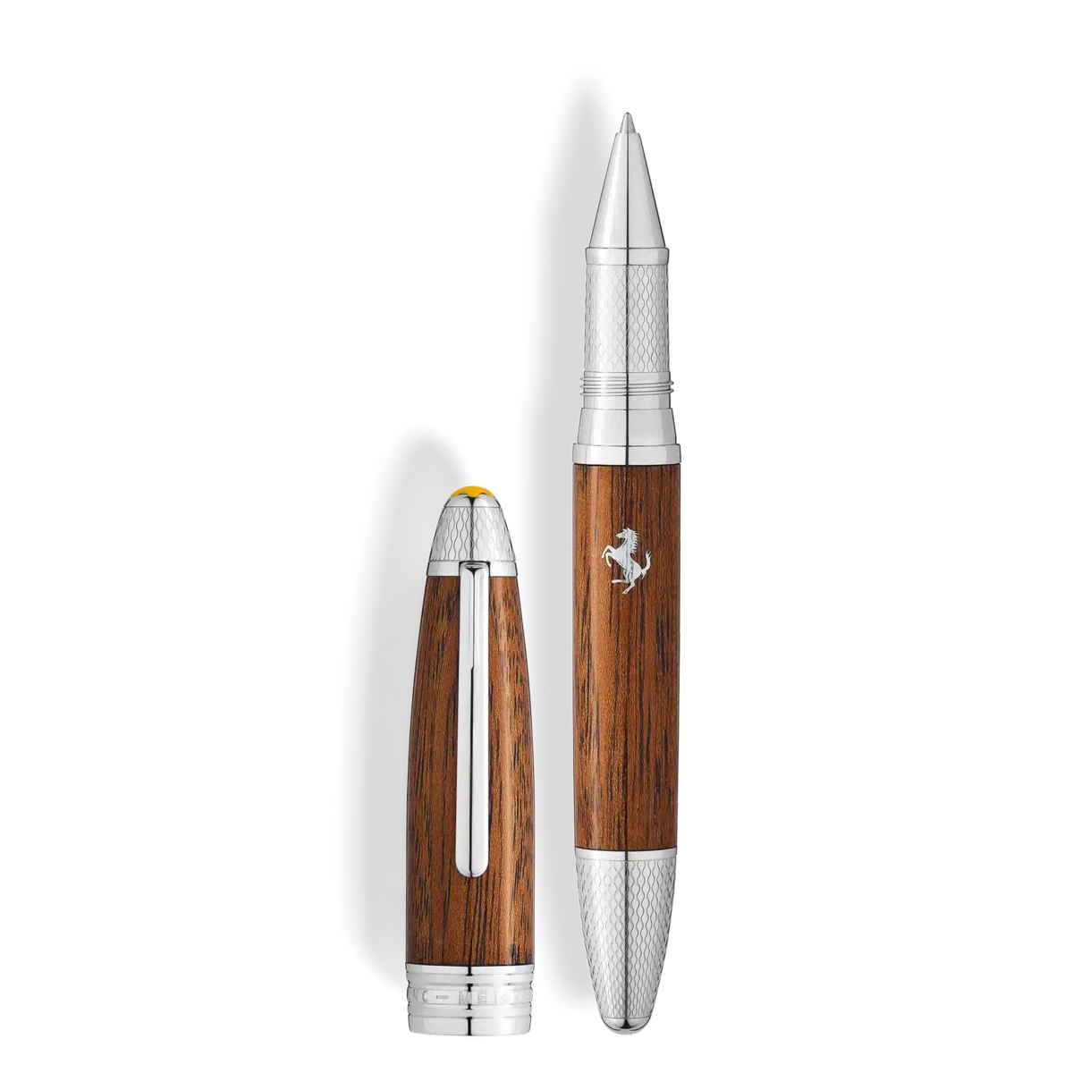 Das Tailor Made-Programm von Ferrari umfasst drei Kollektionen: Classica, Inedita und Scuderia. Ferrari-Kunden können sich von einer oder mehreren dieser Kollektionen inspirieren lassen und die verschiedenen Elemente nach ihrem Geschmack anpassen. Die Meisterstück Great Masters Ferrari Classica, die erste Edition, die im Rahmen dieses Programms auf den Markt gebracht wird, ist von der Classica-Kollektion inspiriert, die den Stilelementen und Merkmalen der legendären GTs aus Maranello einen modernen Touch verleiht. Basierend auf diesen Eigenschaften ist das Schreibgerät eine Hommage an das Design des 250 GTO-Lenkrads und vermittelt das Gefühl und den Traum, eines in den Händen zu halten. Die Kappe ist mit dem Montblanc Emblem aus gelbem Harz verziert – eine Anspielung auf die Farbpalette von Ferrari –, während die platinbeschichtete Kappe und der Kegel mit Gravur an den Griff des Lenkrads erinnern, ein Detail, das sich auch im vorderen Teil wiederfindet. Die Kappe und der Schaft sind aus Sapeli-Holz gefertigt und mit einem eleganten schwarzen Lackeinsatz und dem springenden Pferd von Ferrari verziert. Ident-Nr. MB131319 Physisches Gewicht 73,012 g Abmessungen 148,2 mm * 17,3 mm