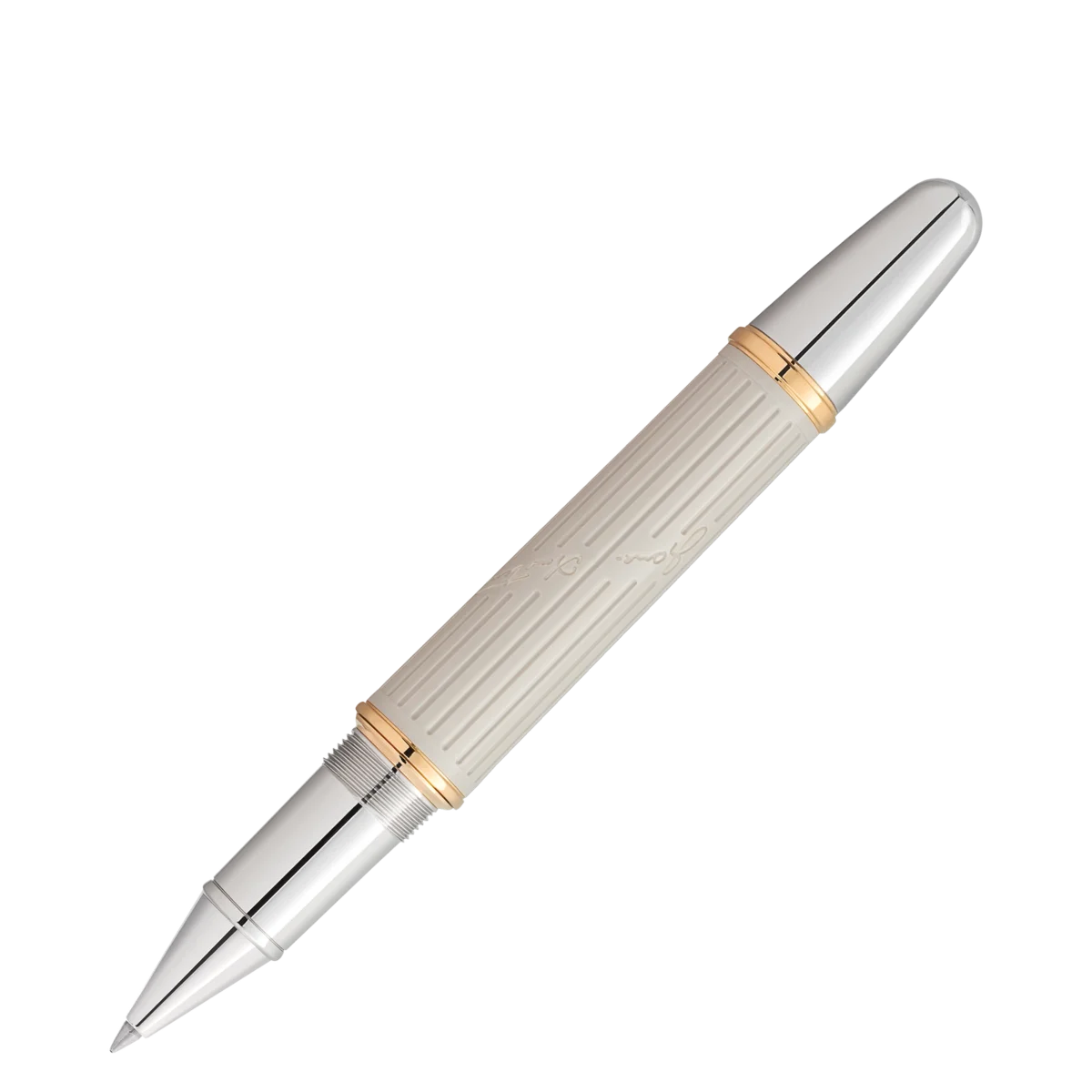 Nur wenige Autoren in der Literaturgeschichte hatten die Fähigkeit, Dialoge zu verfassen und Figuren so elegant, ironisch und scharfsinnig zum Leben zu erwecken wie die britische Autorin Jane Austen. Montblanc hat die Writers Edition Homage to Jane Austen geschaffen, um eine der berühmtesten Autorinnen der englischen Literatur zu würdigen.Diese Edition lässt die Regency-Ära wieder aufleben, als edle Landsitze Schauplatz großartiger Feste waren, die zum Zweck der Pflege sozialer Beziehungen und der Schmiedung von Eheallianzen veranstaltet wurden. Die Kannelüren einer klassischen Säule zieren den eleganten sandsteingrauen Schaft aus Kunstharz, zusammen mit Jane Austens Unterschrift. Die kontrastierende grau-blaue Kappe erinnert an den doppelreihigen Regency-Mantel, den Gentlemen wie Mr. Darcy in „Stolz und Vorurteil“ typischerweise trugen. Goldbeschichtete Ringe auf dem Schaft und platinbeschichtete Beschläge runden das Design ab. Die Gravur der römischen Ziffern XLIII auf dem Kappenring ist eine Anspielung auf das Kapitel des Romans, in dem Elizabeth Bennet zum ersten Mal Mr. Darcys Anwesen sieht.Auf der Titelseite ihres 1811 veröffentlichten Romans „Sinn und Sinnlichkeit“ stand lediglich, dass das Werk „von einer Dame“ geschrieben worden sei. Diese Angabe zur Urheberschaft ziert zusammen mit dem Montblanc-Emblem die Kappe der Writers Edition Homage to Jane Austen Limited Edition. Die Silhouette des Schreibgeräts selbst ähnelt einem Wachssiegelstempel. Der Clip ist ebenso ungewöhnlich wie die Kappe. Er hat die Form einer geflochtenen Kordel mit Kordelzugverschluss und ähnelt einem „Retikül”, einer Art Tasche, die Frauen um 1800 benutzten, um ihr Puder, ihren Spiegel und das unverzichtbare Taschentuch zu transportieren.