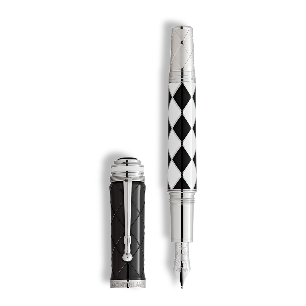 In der reichen Geschichte der Rockmusik gibt es nur wenige Namen, die so konstant glänzen wie der von Queen. Mit einer Karriere, die sich über fünf Jahrzehnte erstreckt, ist die Band eine der erfolgreichsten aller Zeiten. In dieser Zeit verkörperte Queen die Kraft musikalischer Kreativität, und die meisten ihrer Songs standen wochenlang an der Spitze der Charts. Sie schufen so etwas wie ihr eigenes musikalisches Universum, bestehend aus einer Kombination aus Hardrock, Glamrock, Pop, Funk und Oper, und sprengten damit die Grenzen zwischen den Genres. Montblanc widmet seine Great Characters Homage to Queen Limited Edition 1975 diesen Ikonen der Rockmusik, inspiriert vom Album A Night At The Opera. Schwarz und Weiß. Keine andere Farbkombination beschreibt einen so starken Kontrast und keine andere könnte das Ausmaß des musikalischen Universums von Queen besser symbolisieren. Eine Zeit lang war „The Black and the White“ sogar als Titel ihres zweiten Studioalbums vorgesehen und war elf Jahre später das Motto für Mercurys spektakuläre Geburtstagsfeier. Die Limited Edition 1975 erscheint ebenfalls in dieser kontrastreichen Aufmachung. Das vierte Studioalbum der Band übertraf jedoch alles bisher Dagewesene und gilt als das aufwendigste Album des 20. Jahrhunderts. Die vier Künstler, die darauf zu hören sind, sind in die Geschichte eingegangen: Freddy Mercury, der charismatische Frontmann mit einem Stimmumfang von mehreren Oktaven und einem reichen Vibrato; Brian May, der virtuose Gitarrist mit seinem unverwechselbaren E-Gitarrensound; John Deacon, der äußerst kreative Bassist, und Roger Taylor, das rhythmische Herz der Band. Als Hommage an diese vier außergewöhnlichen Musiker sind ihre stilisierten Porträts auf der schwarzen Kappe des Schreibgeräts verewigt, basierend auf den Artworks der legendären Cover von Queen II und Hot Space. Das Album A Night at the Opera – und insbesondere sein Herzstück Bohemian Rhapsody – veranschaulicht Freddie Mercurys Traum, ein Album von epischen Ausmaßen zu schaffen. Das sechsminütige, extravagante Arrangement der Single kombiniert Klavierballaden, Oper und Rock, durchsetzt mit vielschichtigen, kaskadenartigen Gesangspassagen und skurrilen Anspielungen auf Figuren wie Galileo oder Scaramouche, eine Figur aus der Commedia dell’Arte. Mercury selbst, bekannt für seine extravaganten Bühnenkostüme, schlüpfte oft in die Rolle einer anderen Figur der Commedia dell’Arte, des Harlekins. Sein berühmter eng anliegender Ganzkörperanzug mit schwarz-weißem Rautenmuster unterstrich seine unkonventionelle Bühnenpersönlichkeit und inspirierte das rhombische Design des Lautsprechers. Die Edition ehrt auch Brian May und sein erstaunliches Gitarrenspiel, das für den Sound des Albums so entscheidend war, indem sie dem platinbeschichteten Konus sein unverwechselbares Aussehen verleiht. Dieses erinnert an die Lautstärke- und Klangregler von Mays berühmter E-Gitarre. Der Konusring ist mit dem Namen des Albums geprägt: A Night at the Opera. Das Erscheinungsjahr 1975 inspirierte die Entscheidung, die Edition auf 1975 Füllfederhalter und 1975 Rollerballs zu limitieren. Die Krone, die Mercury während der Schlussdarbietung von God Save The Queen trug, war die Inspiration für die Silhouette der Kappe der Limited Edition und ist gleichzeitig eine Metapher für den majestätischen Charakter der Band und ihr musikalisches Vermächtnis. Der platinbeschichtete Clip ist einem Mikrofonständer nachempfunden und verweist damit auf eines der Markenzeichen von Freddie Mercurys Live-Auftritten. Ident-Nr. MB131968 Physisches Gewicht 86,2 g Abmessungen 144,8 mm * 17,8 mm