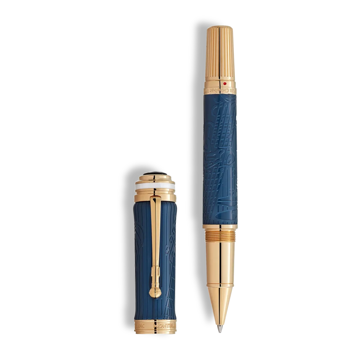 In der reichen Geschichte der Rockmusik gibt es nur wenige Namen, die so konstant glänzen wie der von Queen. Mit einer Karriere, die sich über fünf Jahrzehnte erstreckt, ist die Band eine der erfolgreichsten aller Zeiten. In dieser Zeit verkörperte Queen die Kraft musikalischer Kreativität, und die meisten ihrer Songs standen wochenlang an der Spitze der Charts. Sie schufen so etwas wie ihr eigenes musikalisches Universum, bestehend aus einer Kombination aus Hardrock, Glamrock, Pop, Funk und Oper, und sprengten damit die Grenzen zwischen den Genres. In Anlehnung an das Album „Greatest Hits II“ von 1991 ehrt Montblanc mit der Sonderedition „Great Characters Homage to Queen“ eines der erfolgreichsten Alben von Queen. In Anlehnung an die auffällige Farbkombination der Doppel-LP „Greatest Hits II“ erscheint die Edition in Dunkelblau mit vergoldeten Beschlägen. Die vier Musiker hinter dem Sound dieses legendären Compilation-Albums sind in die Geschichte eingegangen: Freddy Mercury, der charismatische Frontmann mit einem Stimmumfang von mehreren Oktaven und einem reichen Vibrato; Brian May, der virtuose Gitarrist mit seinem unverwechselbaren E-Gitarrensound; John Deacon, der vielseitige und kreative Bassist; und Roger Taylor, das rhythmische Herz der Band. Als Zeichen ihrer musikalischen Virtuosität, die das Album von 1991 zu einem der meistverkauften und bekanntesten der Welt machte, sind ihre „Werkzeuge” auf subtile Weise auf dem kostbaren Harz verewigt: Mikrofon und Bass auf der Kappe; Gitarre und Schlagzeug auf dem Zylinder. Auf ihrem Album Greatest Hits II präsentierte die Band eine breite Auswahl ihrer Chart-Hits, von Rockhymnen bis hin zu eingängigen Popsongs – darunter Kult-Songs wie A Kind of Magic, Klassiker wie Radio Ga Ga und The Show Must Go On, das mitreißende I Want to Break Free oder das ergreifende Under Pressure, eine Zusammenarbeit mit David Bowie. Neben Freddy Mercurys Stimme war das herausragende Gitarrenspiel von Brian May der Schlüssel zum besonderen Sound der Band. Das Schreibgerät ehrt ihn und seine Virtuosität durch die Form der Spitze. In Anlehnung an die charakteristischen Lautstärke- und Klangregler seiner berühmten E-Gitarre ist der Konus mit einem zarten Rillenmuster, einem kleinen roten Punkt sowie einer Gravur des Veröffentlichungsdatums des Albums „Greatest Hits II“ versehen.Die Krone, die Mercury während der Schlussdarbietung von „God Save The Queen“ trug, war die Inspiration für die Silhouette der Kappe der Special Edition und ist gleichzeitig eine Metapher für den majestätischen Charakter der Band und ihr musikalisches Vermächtnis. Der goldbeschichtete Clip ist einem Mikrofonständer nachempfunden und verweist damit auf eines der Markenzeichen von Freddie Mercurys Live-Auftritten.
