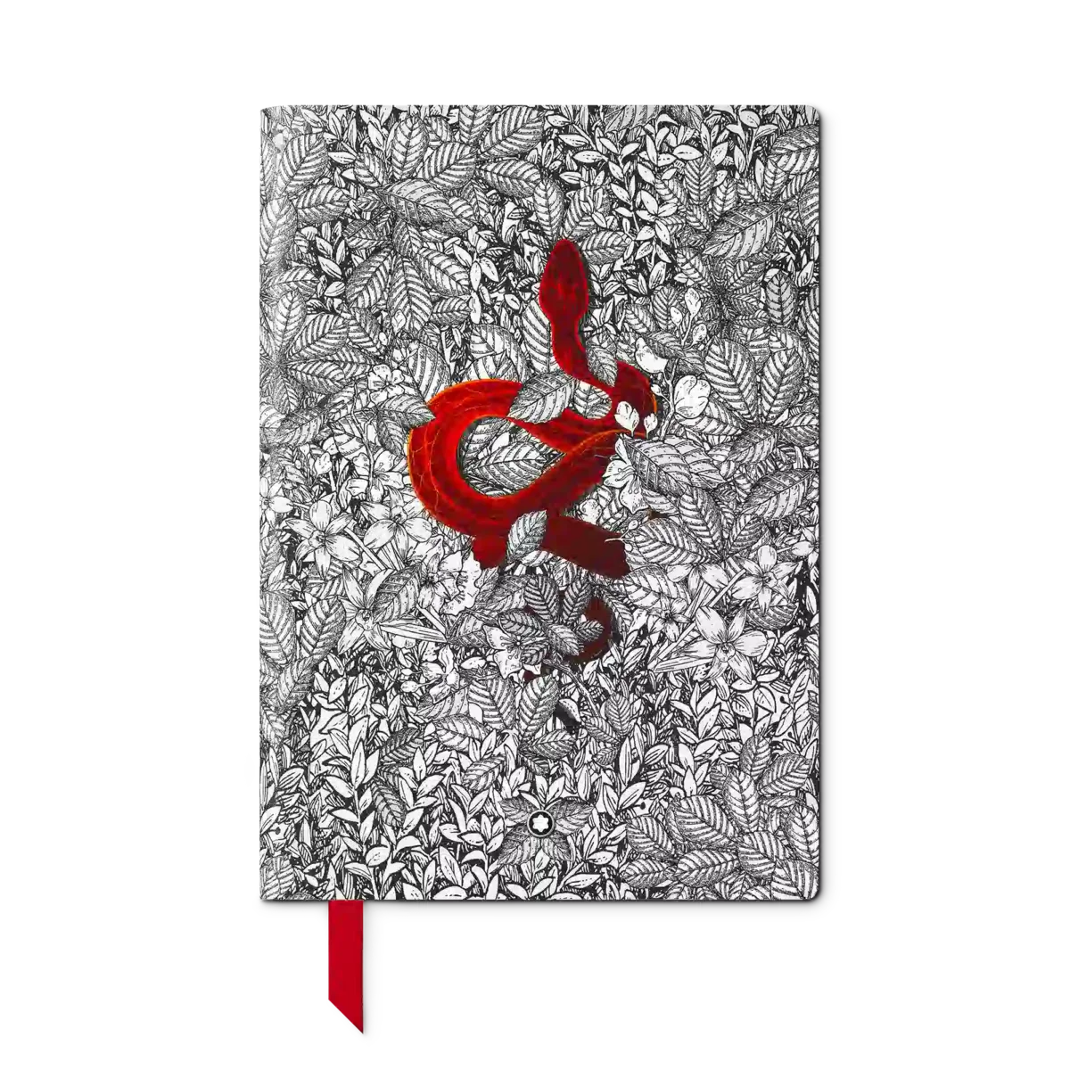 Notizbuch Nr. 146 klein, The Legend of Zodiac, die Schlange, grau – liniert. Hergestellt aus weichem Leder mit digitalem Schlangenprint und Blattmuster auf dem gesamten Notizbuch. Hergestellt in Italien. 96 Blatt / 192 Seiten. Maße 150 x 210 mm.
