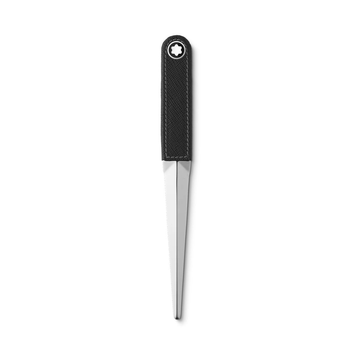 Montblanc Brieföffner aus Stahl, rutheniumbeschichtet mit Einlage aus schwarzem weichem Leder.