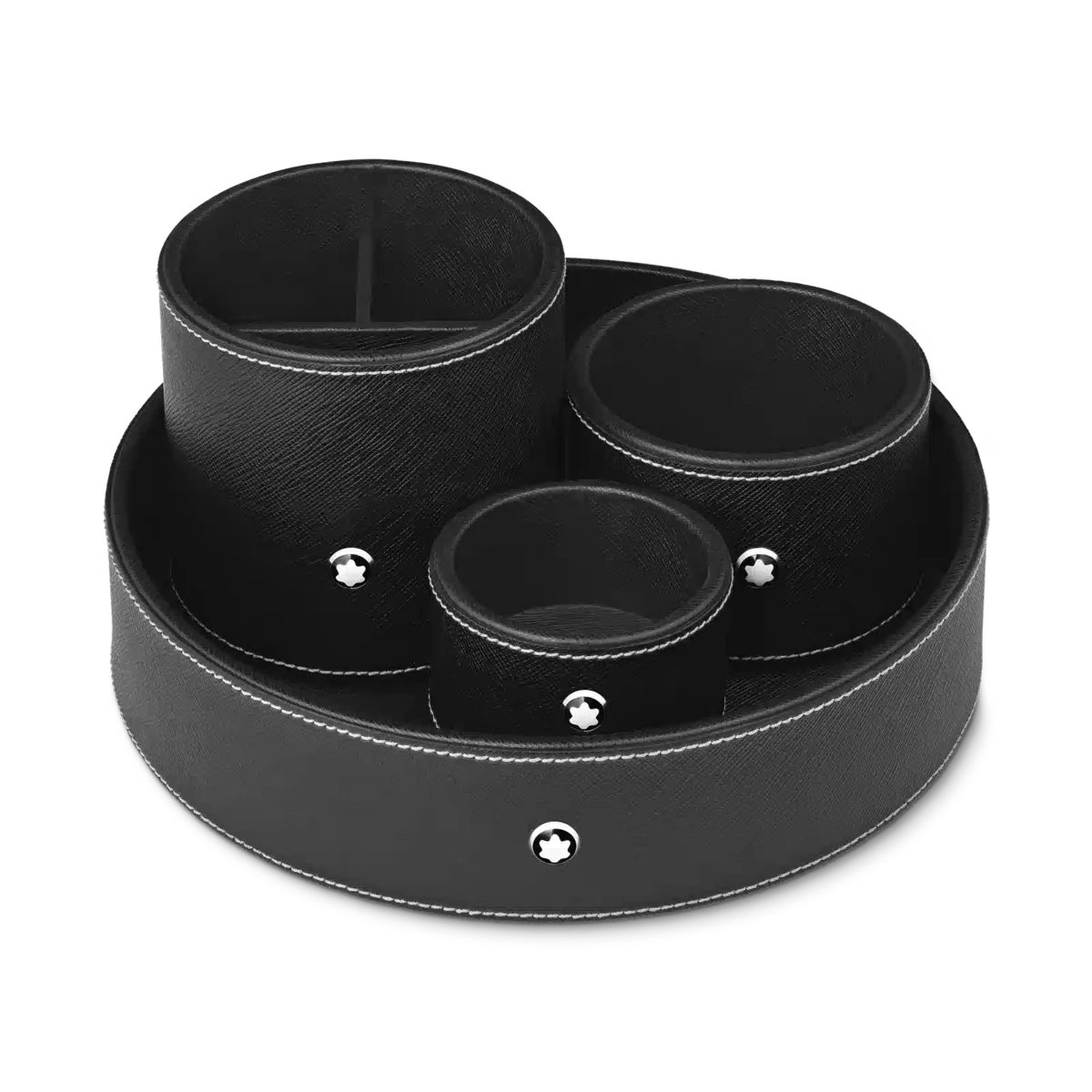 Entdecken Sie alle Details des runden Schreibtischablagen in schwarzem Leder (klein). Online im offiziellen Montblanc Store erhältlich.
