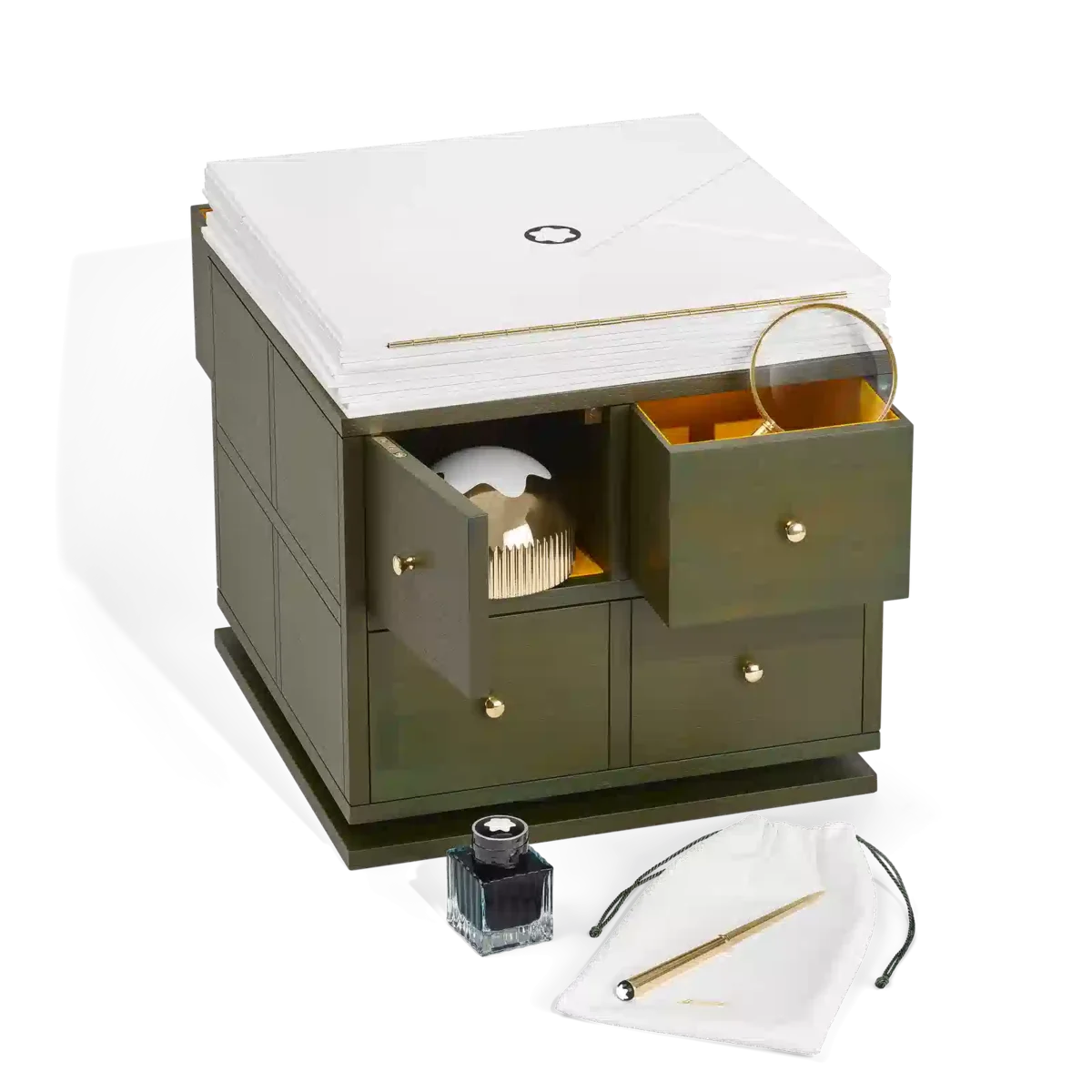Montblanc präsentiert das Happy Holidays Set 2025, eine Hommage an die zeitlose Kunst des Briefeschreibens. Das weltweit auf nur 100 Stück limitierte Set ist sowohl ein Sammlerstück als auch ein bedeutungsvolles Geschenk, das an die Wichtigkeit des persönlichen Ausdrucks und der zwischenmenschlichen Beziehungen erinnert.Es befindet sich in einer fein gearbeiteten Schachtel, deren Design an einen Kuriositätenkabinett eines Schriftstellers erinnert, in dem Kreative die während ihrer Reisen gesammelten Erinnerungsstücke aufbewahren konnten. Hinter jeder der acht Schubladen entfaltet sich eine Reise durch die schneebedeckten Gipfel des Mont Blanc und die Geschichte des Hauses. Die sorgfältig ausgewählten Artikel dienen dazu, Kreativität zu wecken, saisonalen Komfort zu bieten und Reisen zu unterstützen, während ein oberes Fach in Form eines Umschlags einen exklusiven Montblanc-Füllfederhalter und Weihnachtskarten enthüllt. Das Auspacken spiegelt den Geist des Schreibens selbst wider: durchdacht, persönlich und bewusst, zum Leben erweckt in einer vintage-inspirierten Farbpalette aus Grün und Gold.