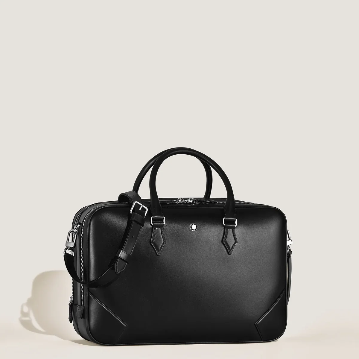 Wir präsentieren die große Meisterstück Dokumententasche: ein elegantes, multifunktionales Accessoire aus feinem schwarzem Leder. Diese neue Tasche eignet sich perfekt für Geschäftsreisen und verfügt über zwei geräumige Fächer, eine Reißverschlusstasche für sichere Aufbewahrung und zwei offene Fächer für einfachen Zugriff. Für zusätzliche Funktionalität sorgt eine Halterung für Schreibgeräte. Mit ihrem eleganten Design und ihrer praktischen Aufteilung ist diese Mappe ein stilvolles Must-have für Berufstätige, die viel unterwegs sind.
