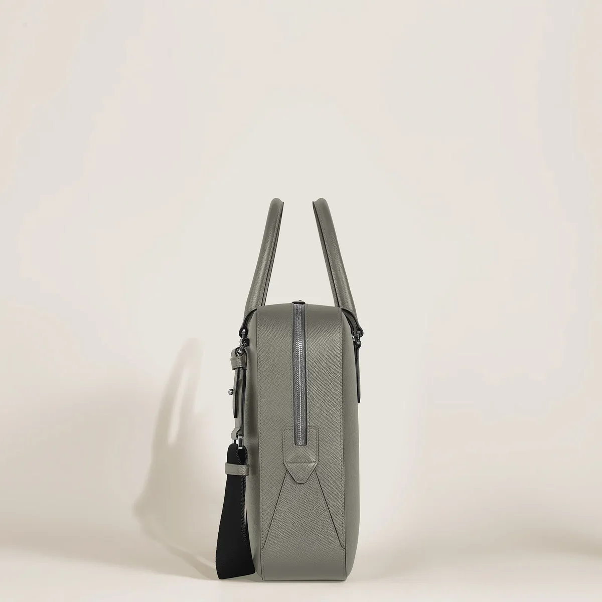 Diese elegante Tasche verfügt über ein geräumiges Hauptfach für den stilvollen Transport von A4-Dokumenten, elektronischen Geräten und anderen beruflichen Utensilien. Ihre Schreibgeräte können in speziellen Fächern verstaut werden, während das anpassungsfähige modulare Design die Befestigung an anderen Taschen der Sartorial-Kollektion ermöglicht. Das luxuriöse bedruckte Leder in Mittelgrau rundet das Ganze ab und verleiht ihm einen Hauch von Raffinesse. Ident-Nr. MB199358 Abmessungen 380 mm * 90 mm * 295 mm