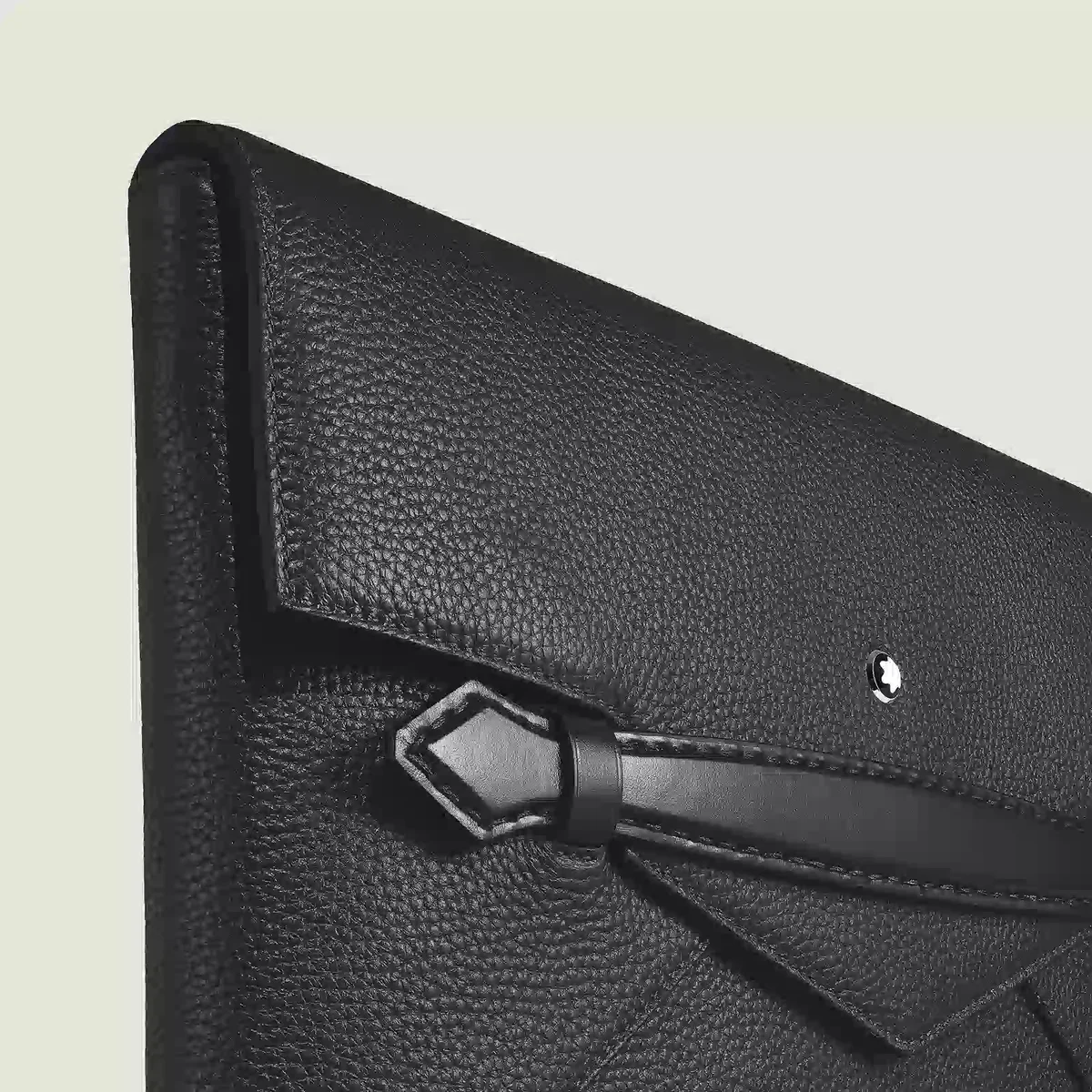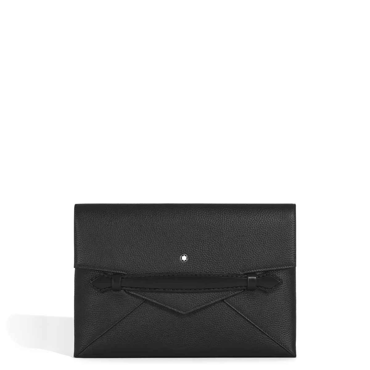 Dieser Dokumentenhalter wurde für alle entwickelt, die in jedem Aspekt ihres Lebens Eleganz suchen. Er ist aus schwarzem genarbtem Kalbsleder gefertigt. Seine schlanke, von einem Umschlag inspirierte Form wird durch einen spitzenförmigen Griff an der Vorderseite unterstrichen, der der Welt der modernen Accessoires einen Hauch von Montblanc-Tradition verleiht. Das Hauptfach verfügt über ein offenes Fach und zwei Stifthalterungen für eine gute Organisation, während das hintere Fach einen einfachen Zugriff auf wichtige Utensilien ermöglicht.