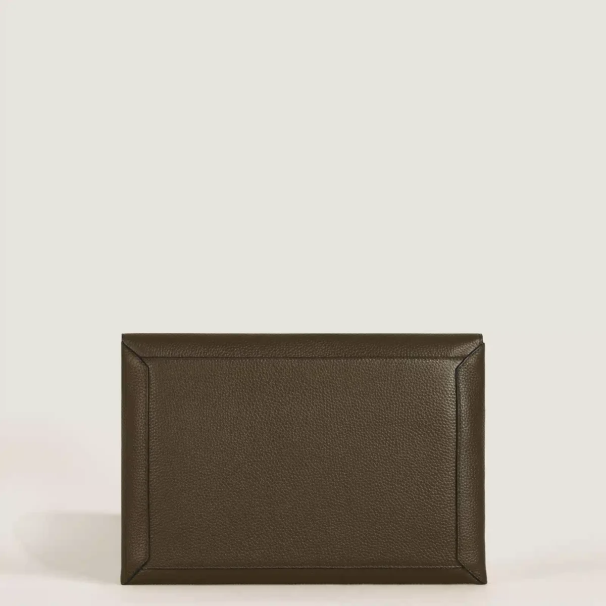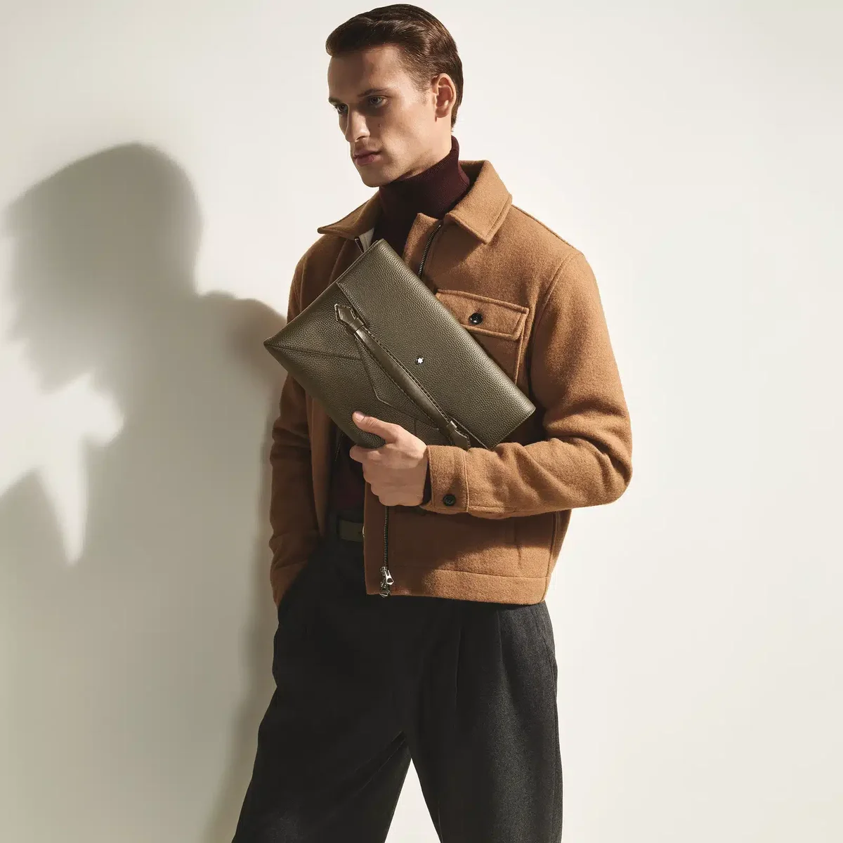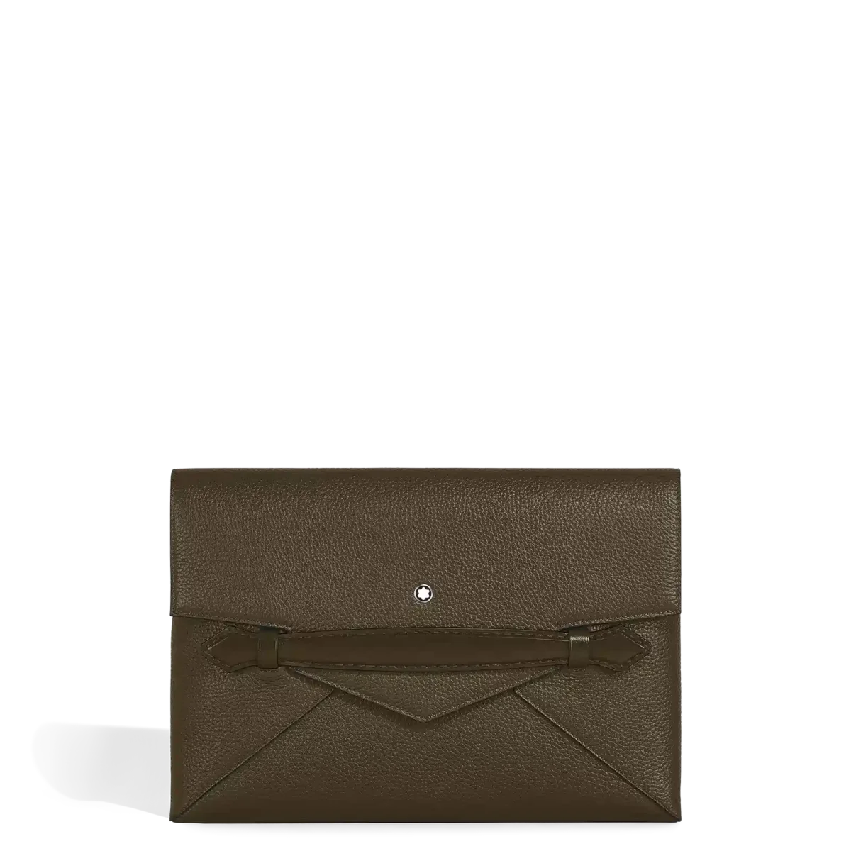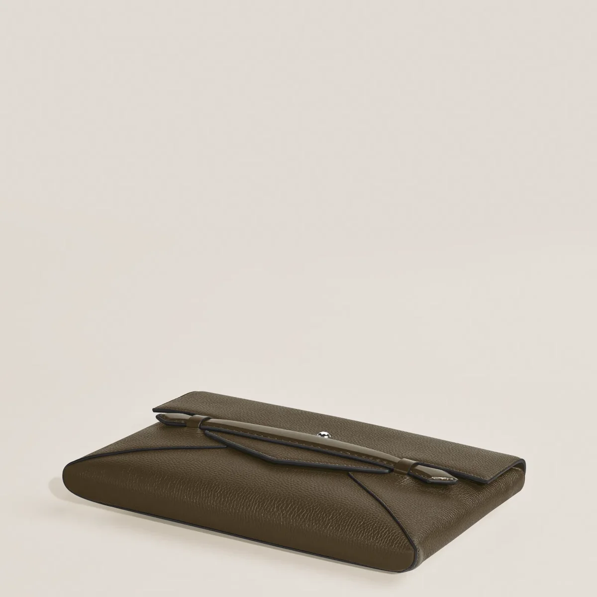 Diese Dokumententasche wurde für Menschen entworfen, die in jedem Aspekt ihres Lebens Eleganz suchen. Sie ist aus khakifarbenem genarbtem Kalbsleder gefertigt. Ihre schlanke, von einem Umschlag inspirierte Form wird durch einen stiftförmigen Griff an der Vorderseite aufgewertet, der der Welt der modernen Accessoires einen Hauch von Montblanc-Tradition verleiht. Das Hauptfach verfügt über ein offenes Fach und zwei Stifthalterungen für eine gute Organisation, während das hintere Fach einen einfachen Zugriff auf wichtige Utensilien ermöglicht.