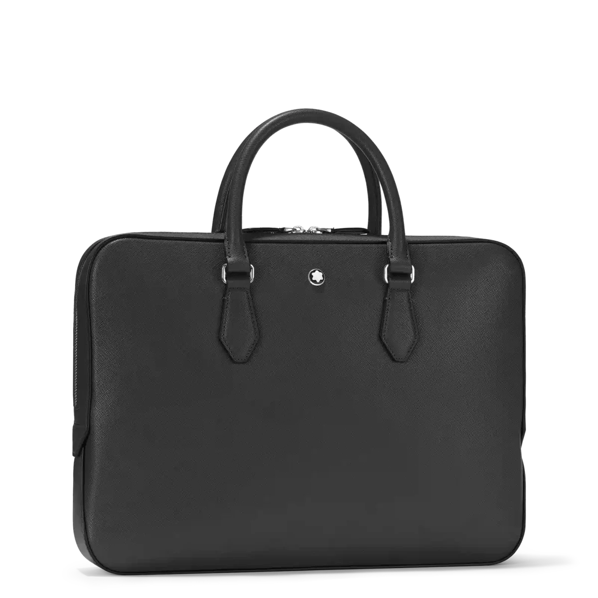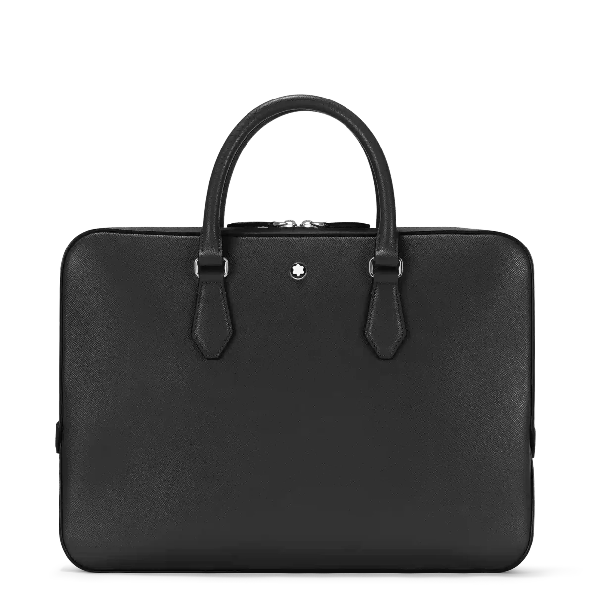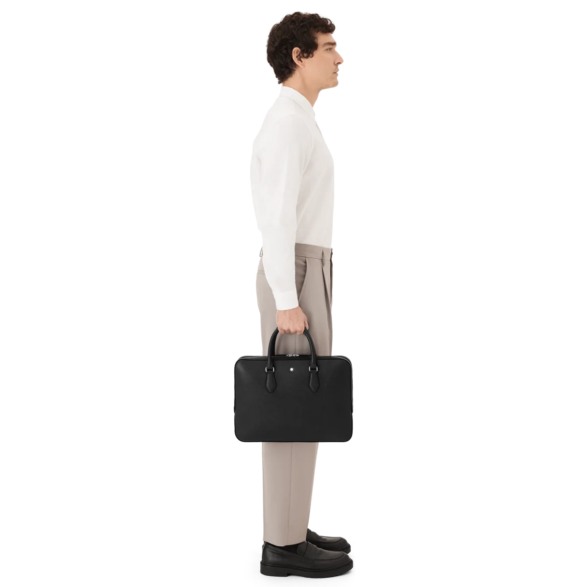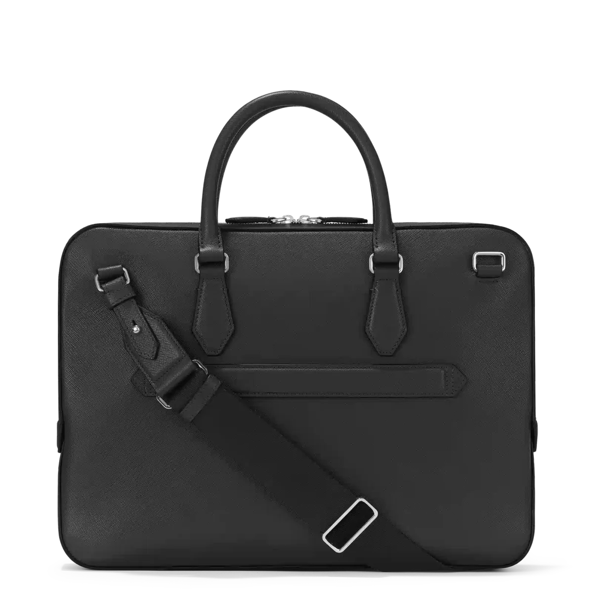 Diese schlanke und stilvolle Aktentasche verleiht Business-Outfits eine raffinierte Note. Sie ist aus luxuriösem Leder gefertigt und verfügt über eine modulare Funktionalität. Sie können Ihre Aktentasche durch das Anbringen kleinerer Accessoires individuell gestalten. Zu den wichtigsten Details gehören die Griffe, deren Form die Schönheit der Handschrift unterstreicht, sowie das Montblanc Emblem in einer neuen, größeren Größe.