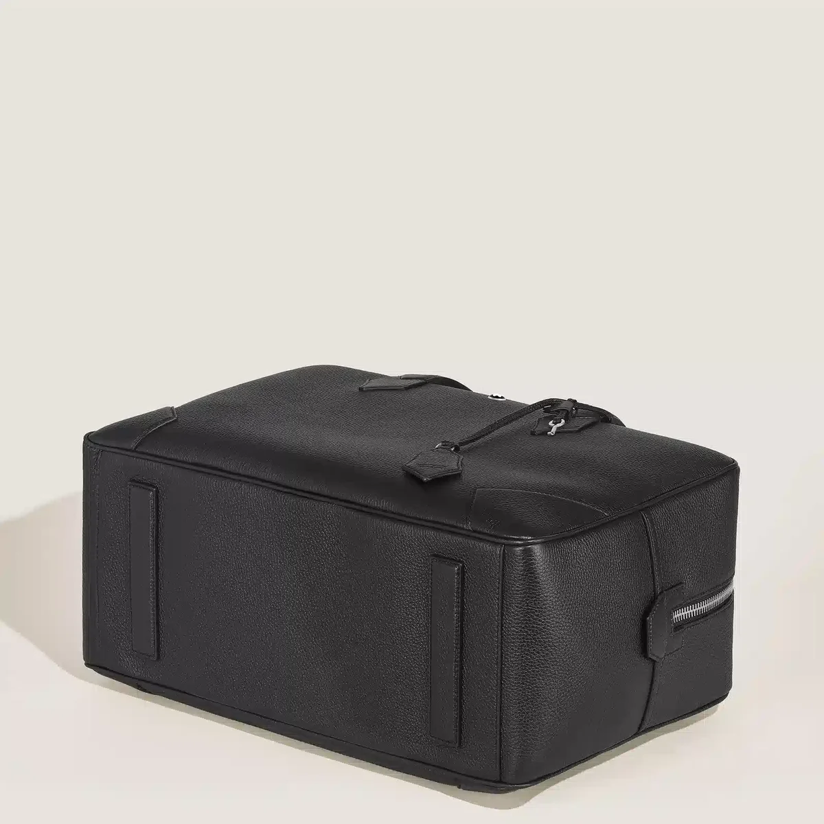 Die Montblanc 149 Tasche ist ein eleganter Begleiter für Kurztrips oder Wochenendausflüge und verfügt über einen geräumigen Innenraum, eine Reißverschlusstasche und zwei offene Fächer sowie eine spezielle Schlaufe für Ihr Schreibgerät. Die elegante Textur des weichen, genarbten Leders in Schwarz verleiht ihr einen Hauch von Luxus, während der externe Verschluss mit Schloss und Schlüssel für zusätzliche Sicherheit für Ihre Habseligkeiten sorgt.