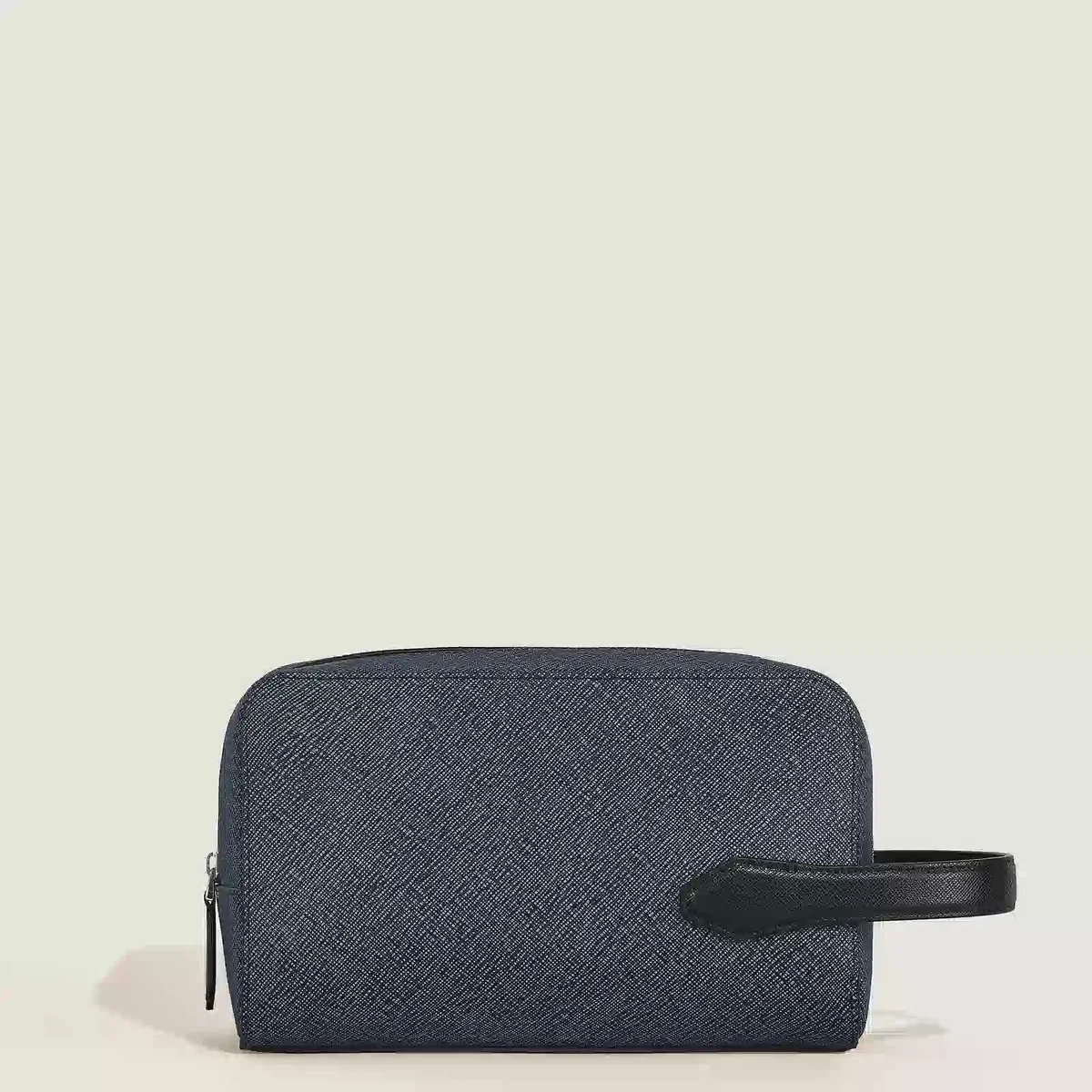 Ob auf Geschäftsreisen oder im Urlaub, diese Clutch ist ein unverzichtbarer Reisebegleiter. Sie ist aus geprägtem Sartorial-Leder in einer raffinierten zweifarbigen Kombination aus edlem Blau und Schwarz gefertigt und verfügt über einen geräumigen Innenraum und eine Außentasche mit Reißverschluss für Ihre wichtigsten Utensilien. Dank der Ledergriffe können Sie sie in der Hand tragen oder in einer Reisetasche verstauen.